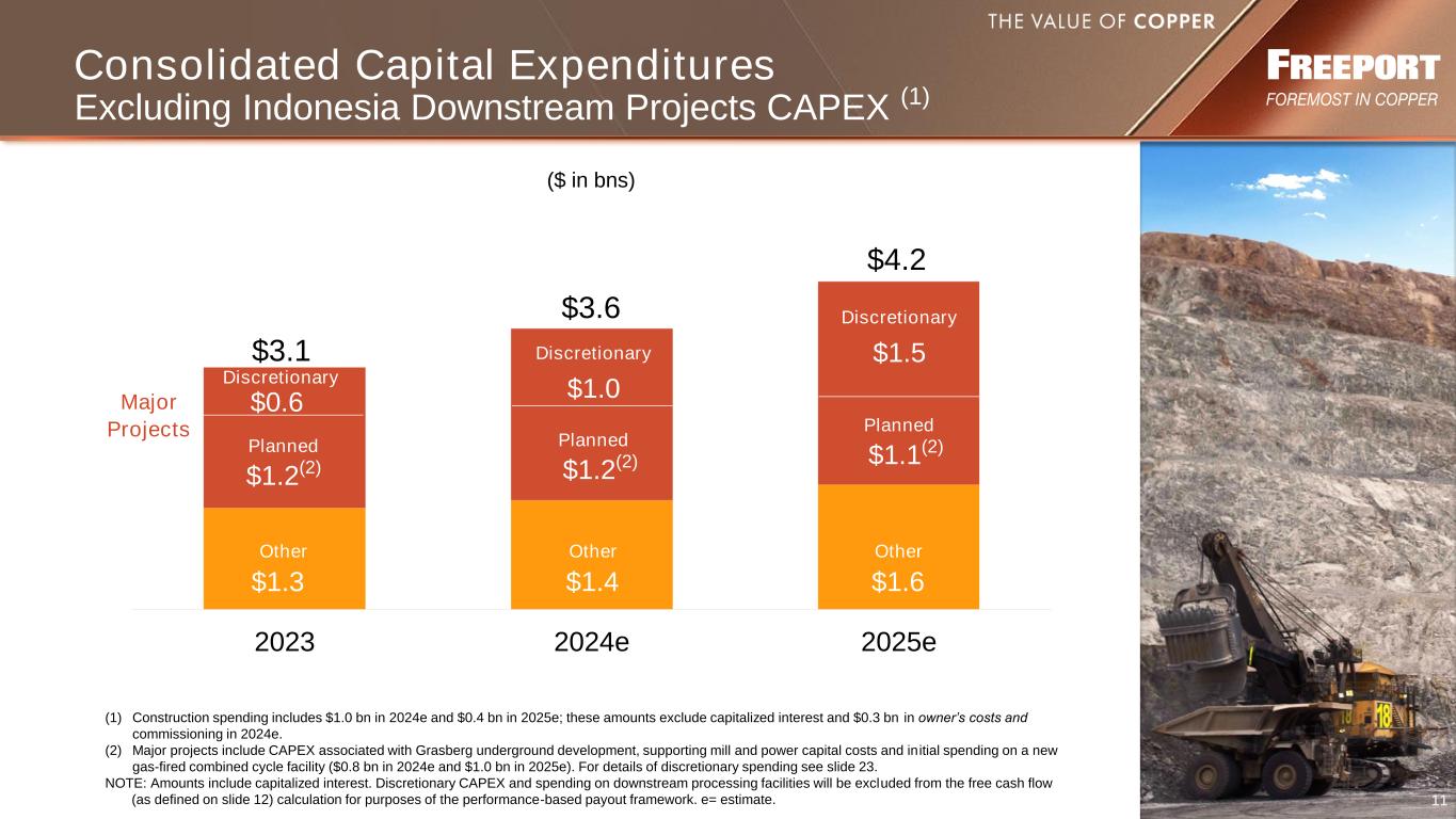 ▪Capital expenditures totaled $1.2 billion, including $0.4 billion for major mining projects and $0.3 billion for PT Freeport Indonesia’s (PT-FI) new smelter and precious metals refinery (PMR) (collectively, PT-FI’s new downstream processing facilities), in third-quarter 2024. Capital expenditures for the year 2024 are expected to approximate $4.6 billion, including $2.2 billion for major mining projects and $1.0 billion for PT-FI’s new downstream processing facilities (excluding capitalized interest, owner’s costs and commissioning).