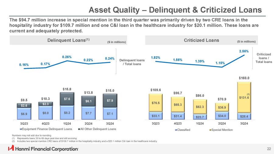 “Hanmi is well-positioned for a strong close to 2024 with a robust balance sheet, ample liquidity, healthy capital ratios, and a solid loan pipeline. Our team remains committed to delivering the solutions our customers need and results our shareholders expect,” concluded Lee.