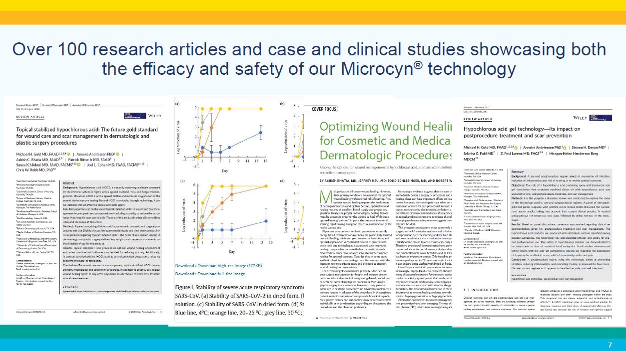 Over 100 research articles and case and clinical studies showcasing both the efficacy and safety of our Microcyn ® technology bs/pii/S0099239917 y of Barcelona, 11/27 evention, see https:// management in derm ized - HOCL - consens apharma.com/wp - con 310439 /2020 sonomapharma.com/wp - atologic and plastic surgery us - article - 2020.pdf tent/uploads/2018/11/Pracitcal - • Dermodacyn® Disinfecting solution https://www.sciencedirect.com/scie • Endocyn® study on cellular toxicity, • HOCl study evaluating virucidal act • Hypochlorous acid gel technology content/uploads/2020/08/Gold_et_ • Topical stabilized hypochlorous aci procedures, see https://sonomapha • HOCl Article: Optimizing Wound He Derm - HOCl - article - 4 - 7 - 18 - wounds. study on viability of SARS - CoV - 2, see nce/article/pii/S019567012030339X see https://www.sciencedirect.com/science/article/a ivity in Vero E6 cells against SARS - CoV - 2, Universit — Its impact on post - procedure treatment and scar pr al - 2017 - Journal_of_Cosmetic_Dermatology - 003.pdf d: The future gold standard for wound care and scar rma.com/wp - content/uploads/2020/08/Topical - Stabil aling for Procedures – Apr 2018, see https://sonom pdf 7