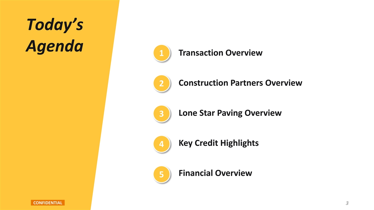 Today’s Agenda Transaction Overview 1 Construction Partners Overview 2 Lone Star Paving Overview 3 Key Credit Highlights 4 Financial Overview 5 CONFIDENTIAL 3