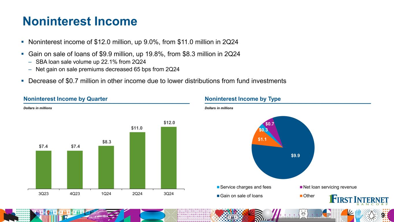 ▪Noninterest income of $12.0 million, a 9.0% increase from the second quarter of 2024