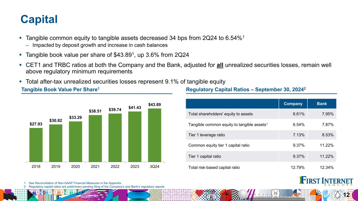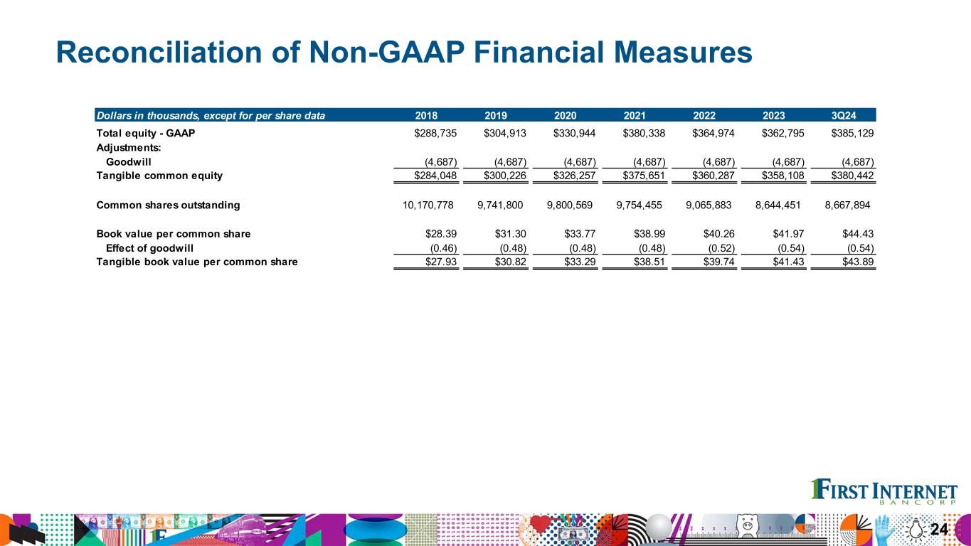 ▪Tangible book value per share1 of $43.89, a 3.6% increase from the second quarter of 2024, and a 10.9% increase from the third quarter of 2023