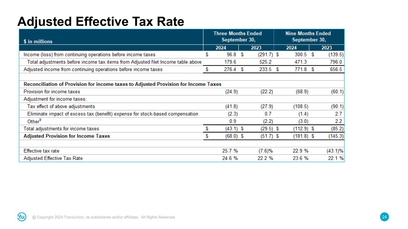 24@ Copyright 2024 TransUnion, its subsidiaries and/or affiliates. All Rights Reserved. Adjusted Effective Tax Rate