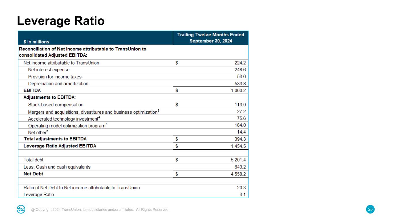 25@ Copyright 2024 TransUnion, its subsidiaries and/or affiliates. All Rights Reserved. Leverage Ratio