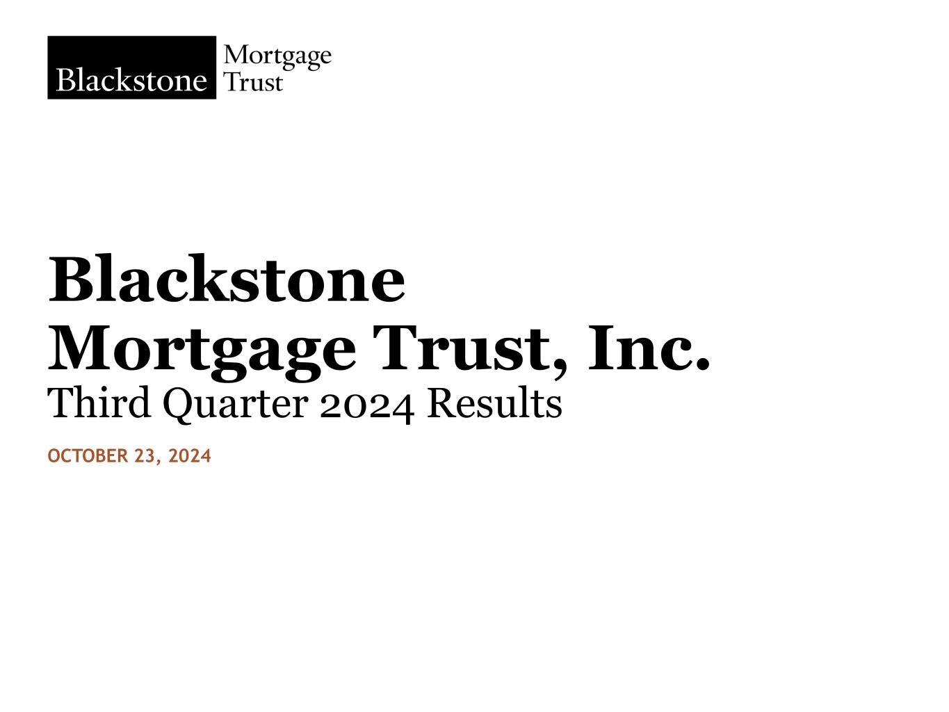 Blackstone Mortgage Trust, Inc. Blackstone Mortgage Trust, Inc. Blackstone Mortgage Trust, Inc. Third Quarter 2024 Results OCTOBER 23, 2024