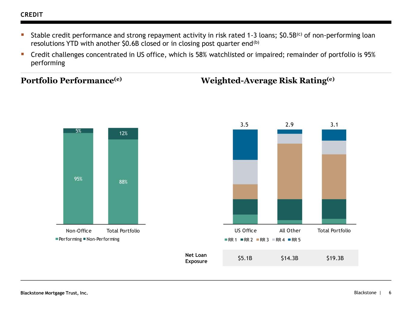 Blackstone |Blackstone Mortgage Trust, Inc. CREDIT 6 ▪ Stable credit performance and strong repayment activity in risk rated 1-3 loans; $0.5B(c) of non-performing loan resolutions YTD with another $0.6B closed or in closing post quarter end(b) ▪ Credit challenges concentrated in US office, which is 58% watchlisted or impaired; remainder of portfolio is 95% performing Weighted-Average Risk Rating(e) 3.5 2.9 3.1 Net Loan Exposure $5.1B $14.3B $19.3B Portfolio Performance(e) 12 on ffice Total ortfolio erforming on erforming ffice ll ther Total ortfolio 1 2 3 4