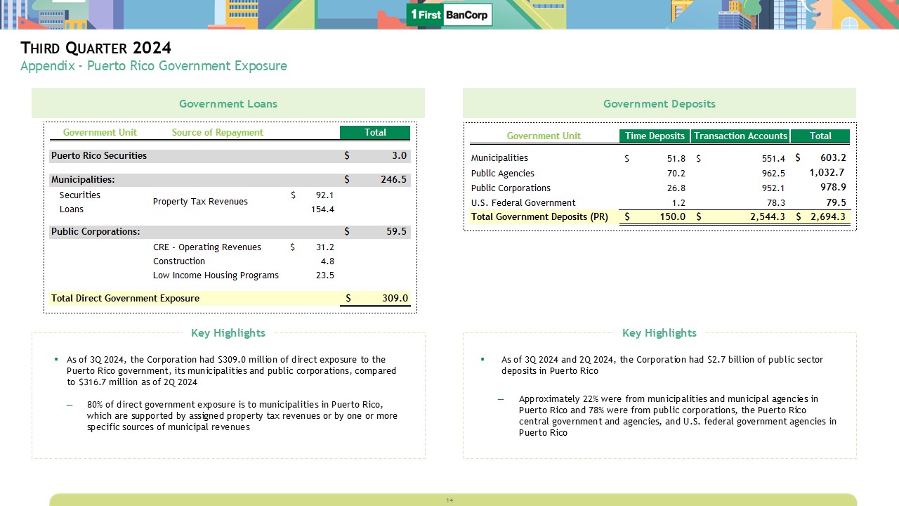 As of each of September 30, 2024, June 30, 2024 and December 31, 2023, government deposits amounted to $3.2 billion.
