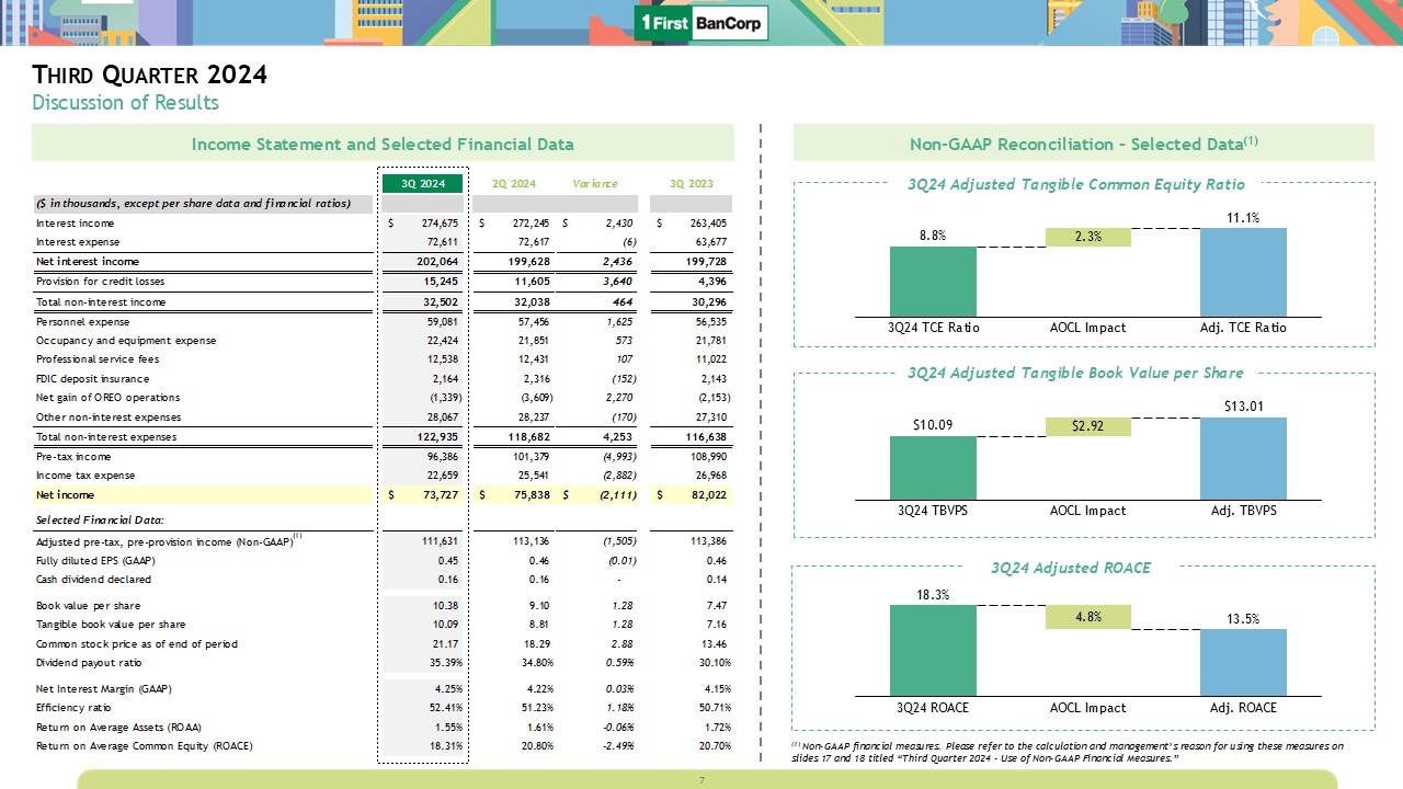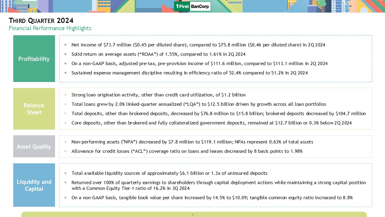 First BanCorp Conference Call Presentation – Financial Results for the quarter ended September 30, 2024