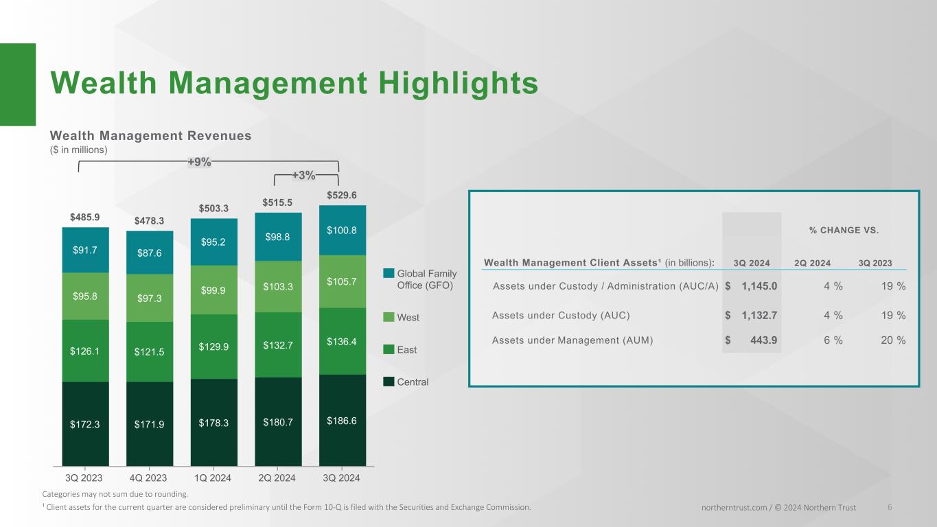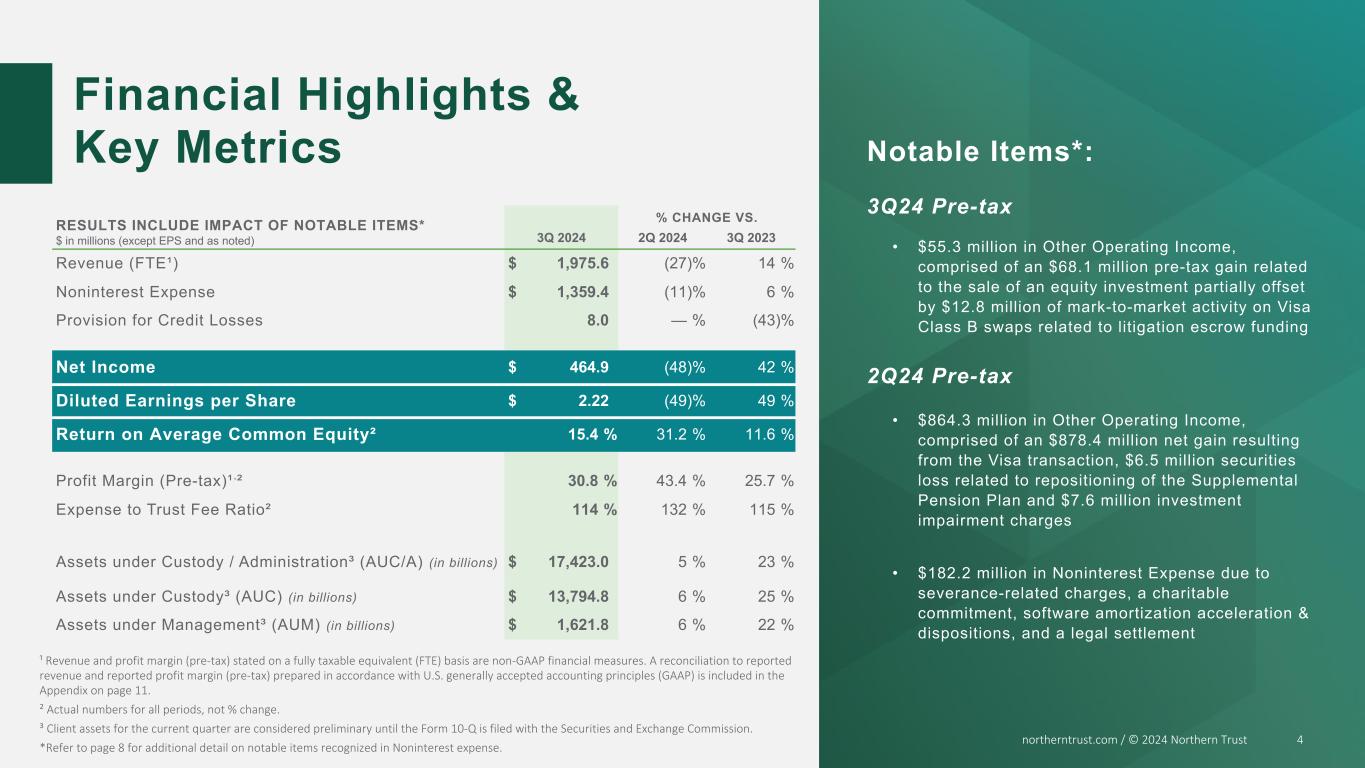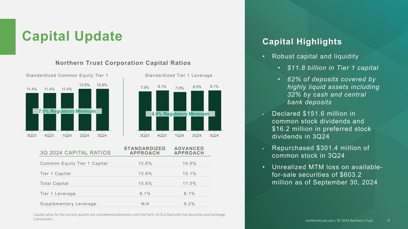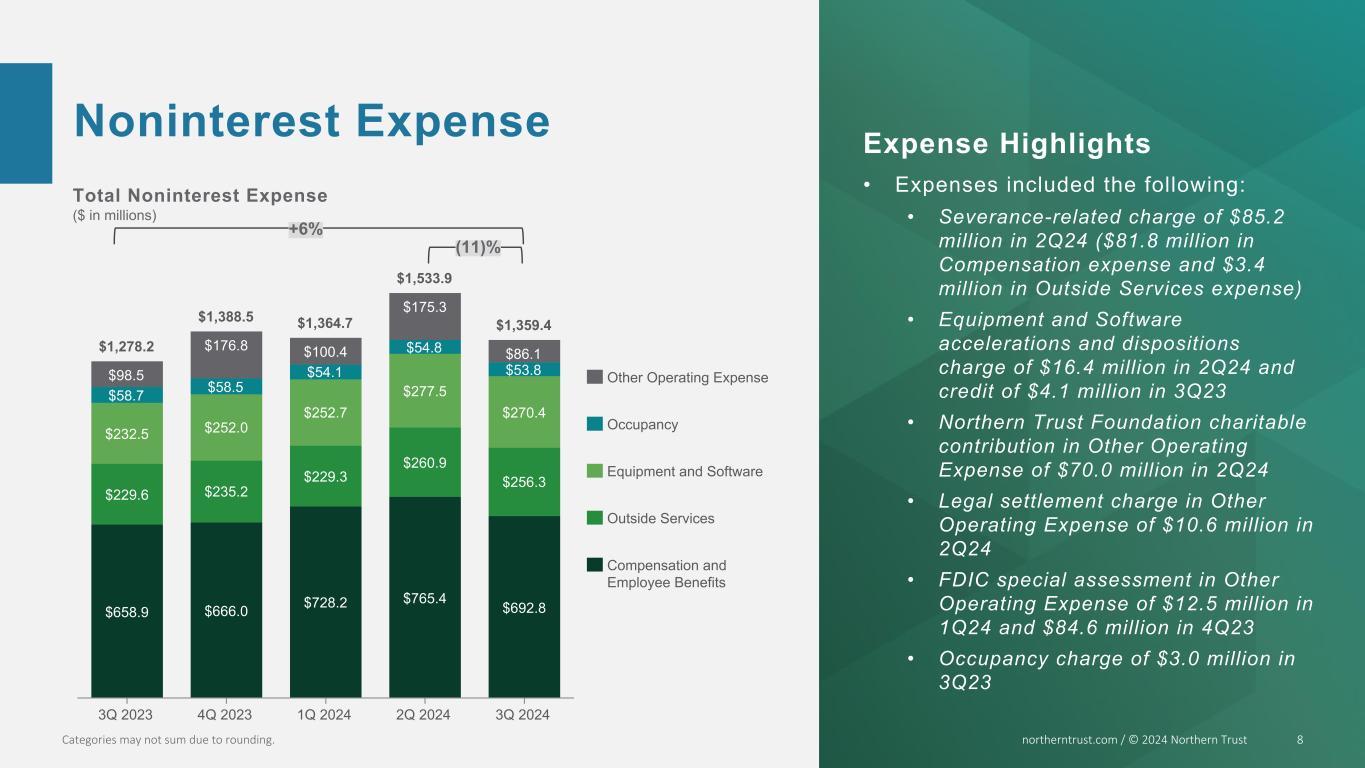 NORTHERN TRUST CORPORATION THIRD QUARTER 2024 RESULTS | ||