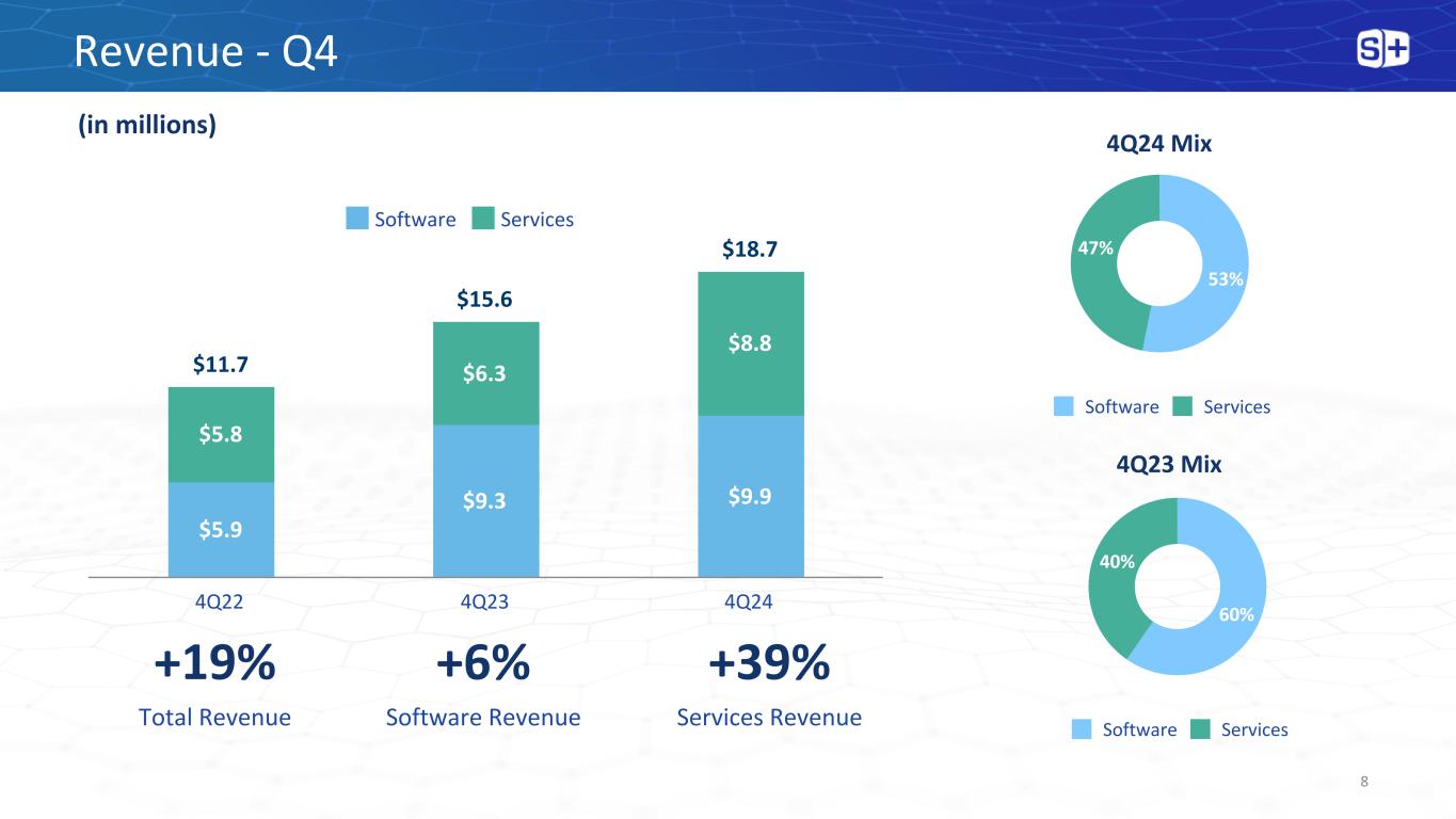 •Services revenue increased 39% to $8.8 million, representing 47% of total revenue