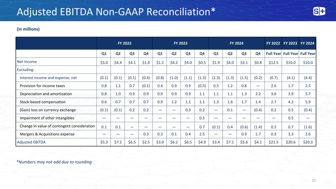 | Adjusted EBITDA | | | | | | | | | | | | | | | | | | $ | 3.0 | | | $ | 6.2 | | | $ | 6.5 | | | $ | 4.9 | | | $ | 3.4 | | | $ | 7.1 | | | $ | 5.6 | | | $ | 4.1 | | | $ | 21.5 | | | | | | | | | $ | 20.6 | | | $ | 20.3 | |