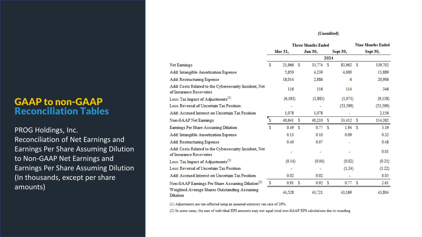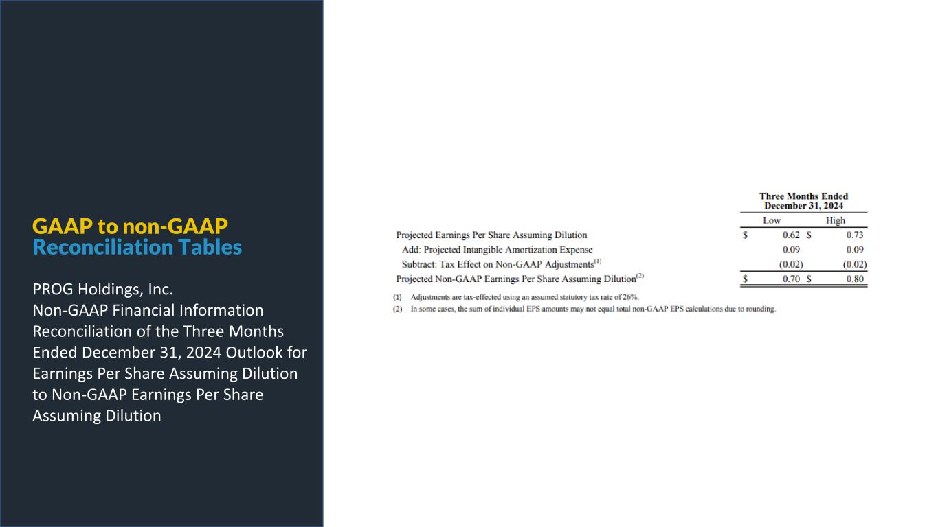 GAAP to non-GAAP Reconciliation Tables PROG Holdings, Inc. Non-GAAP Financial Information Reconciliation of the Three Months Ended December 31, 2024 Outlook for Earnings Per Share Assuming Dilution to Non-GAAP Earnings Per Share Assuming Dilution