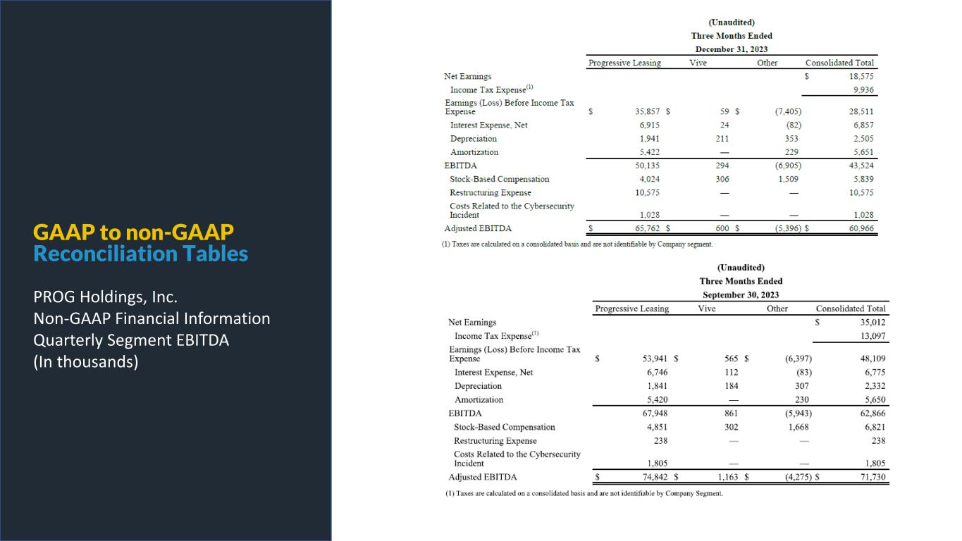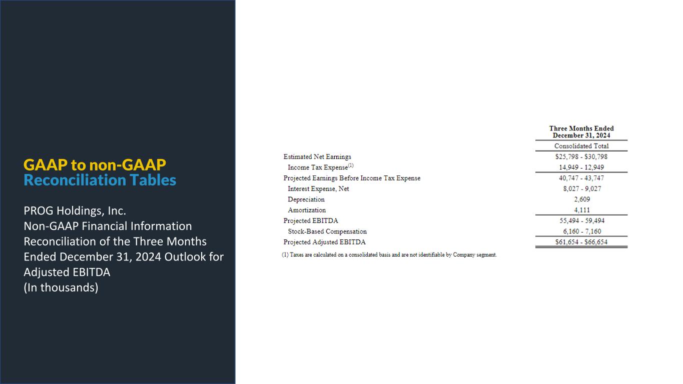PROG Internal GAAP to non-GAAP Reconciliation Tables PROG Holdings, Inc. Non-GAAP Financial Information Reconciliation of the Three Months Ended December 31, 2024 Outlook for Adjusted EBITDA (In thousands)