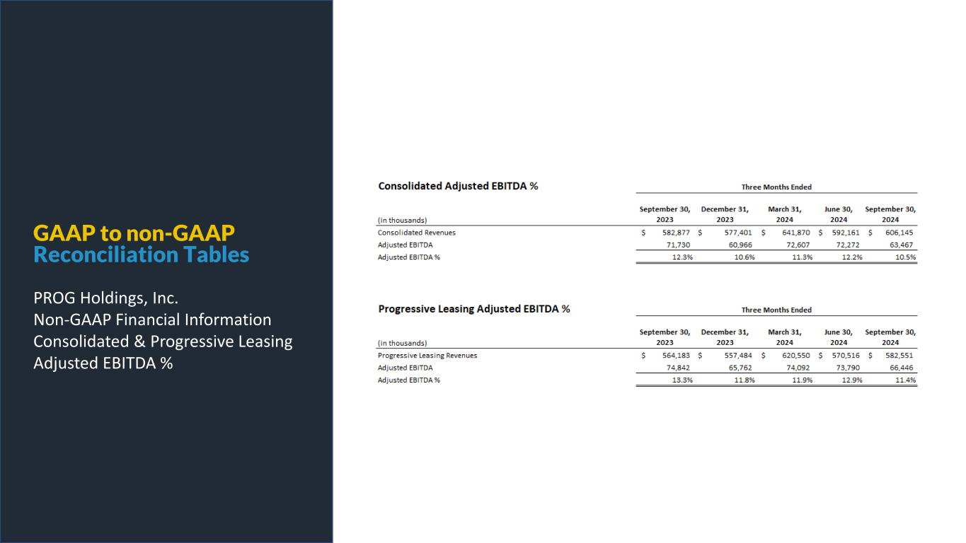 PROG Internal GAAP to non-GAAP Reconciliation Tables PROG Holdings, Inc. Non-GAAP Financial Information Consolidated & Progressive Leasing Adjusted EBITDA %