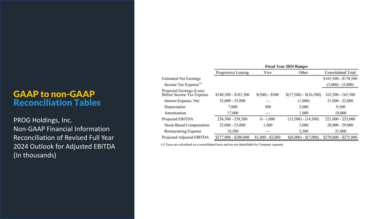 PROG Internal GAAP to non-GAAP Reconciliation Tables PROG Holdings, Inc. Non-GAAP Financial Information Reconciliation of Revised Full Year 2024 Outlook for Adjusted EBITDA (In thousands)