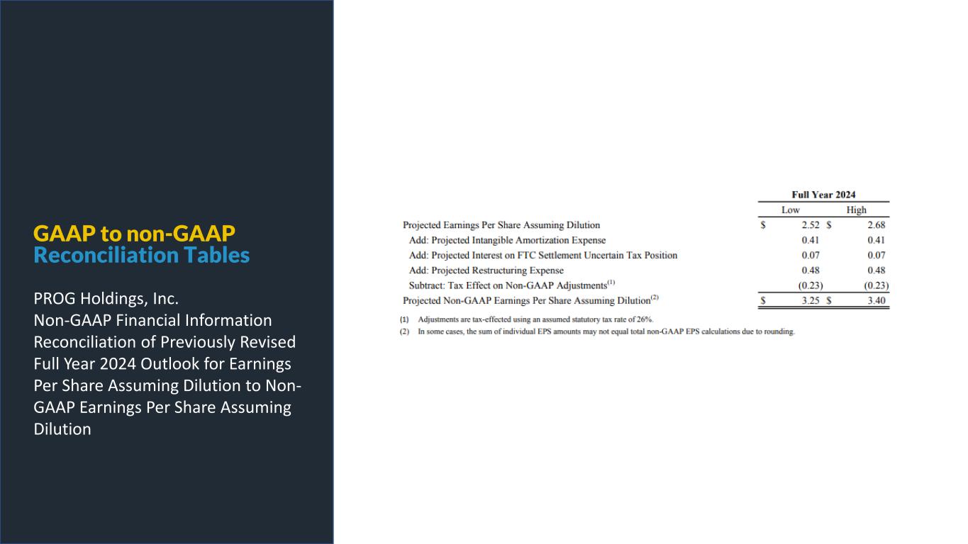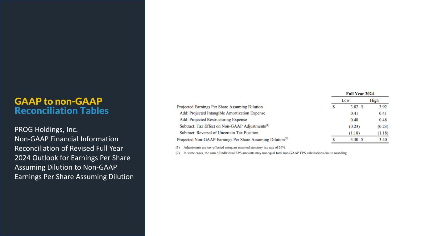 PROG Internal GAAP to non-GAAP Reconciliation Tables PROG Holdings, Inc. Non-GAAP Financial Information Reconciliation of Revised Full Year 2024 Outlook for Earnings Per Share Assuming Dilution to Non-GAAP Earnings Per Share Assuming Dilution