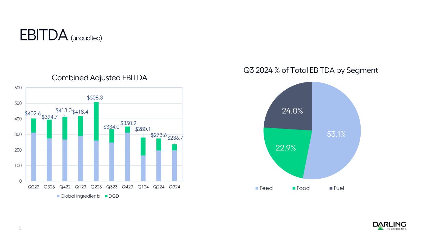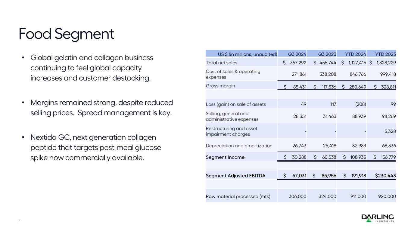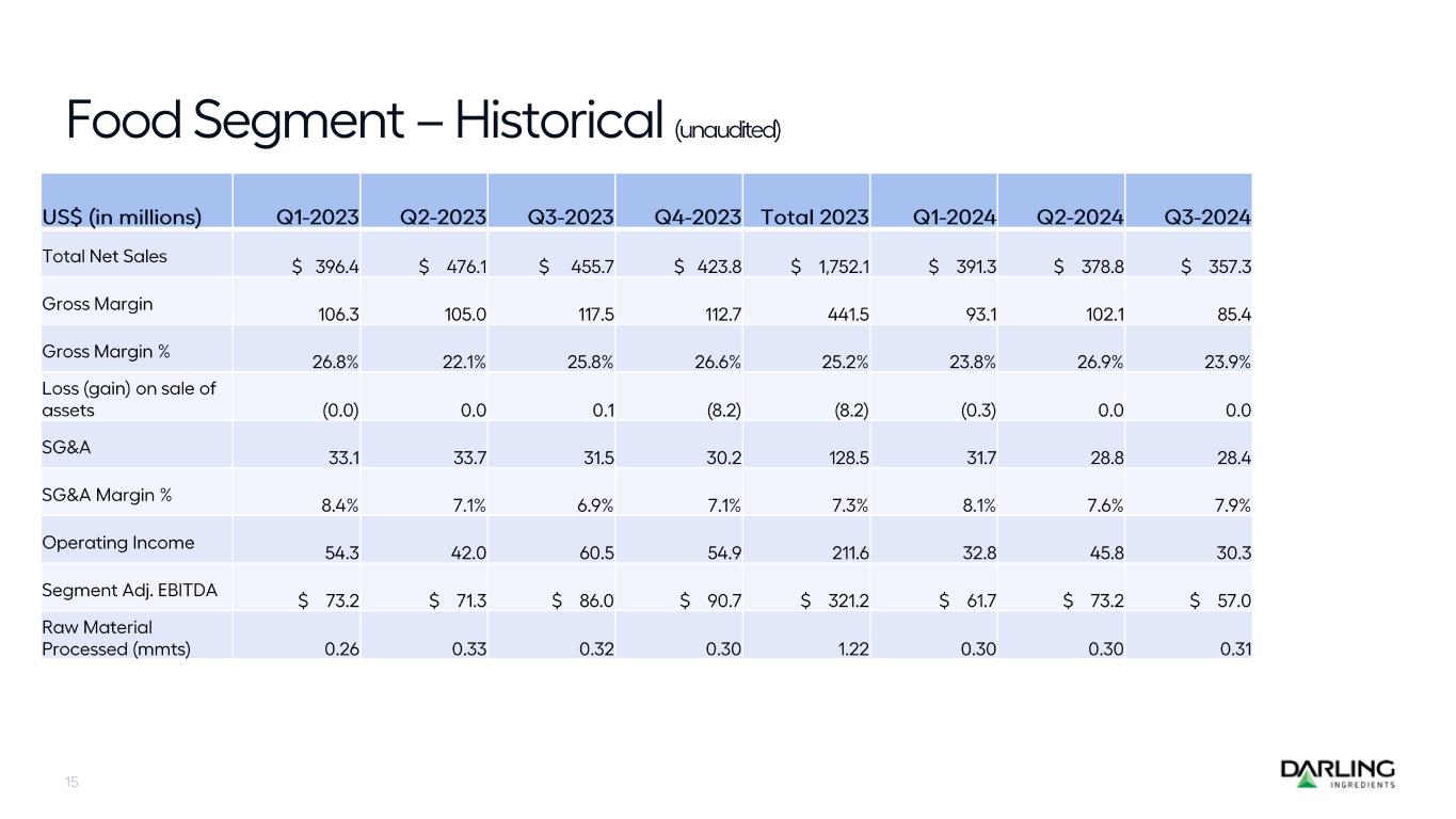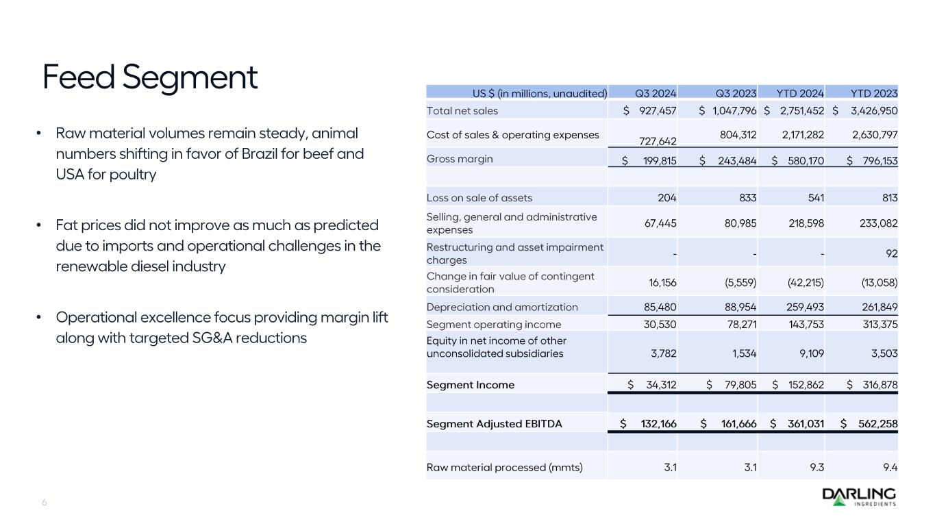 $402.6 $394.7 $413.0$418.4 $508.3 $334.0 $350.9 $280.1 $273.6 $236.7 0 100 200 300 400 500 600 Q222 Q323 Q422 Q123 Q223 Q323 Q423 Q124 Q224 Q324 Global Ingredients DGD Feed Food Fuel