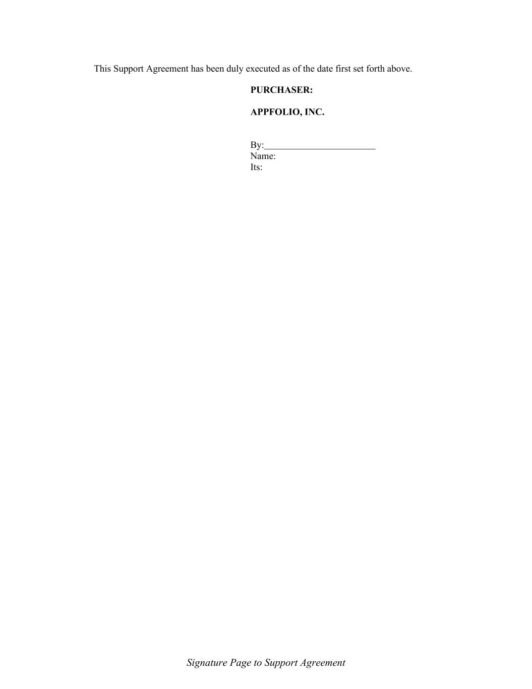 Signature Page to Support Agreement This Support Agreement has been duly executed as of the date first set forth above. PURCHASER: APPFOLIO, INC. By: Name: Its: