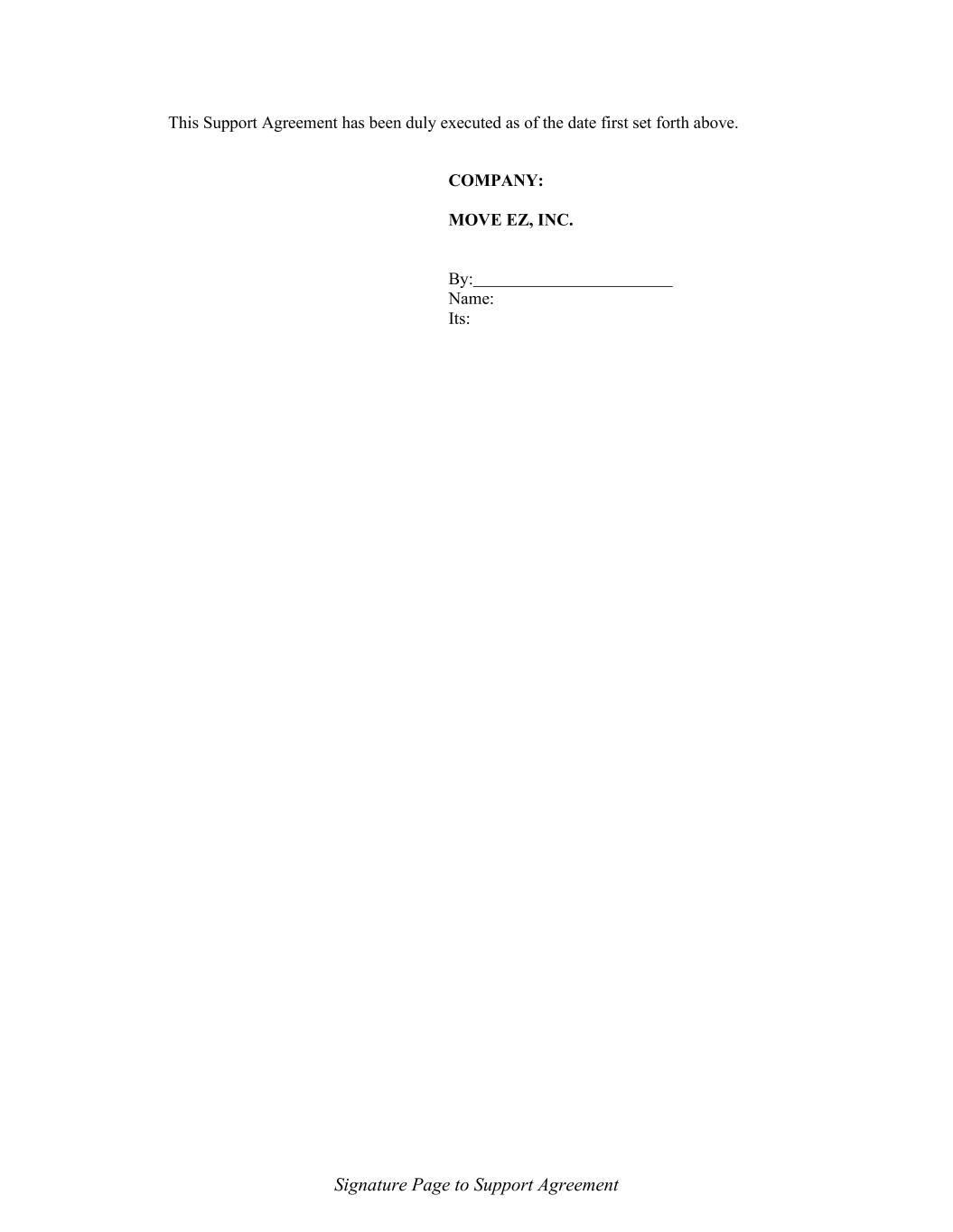 Signature Page to Support Agreement This Support Agreement has been duly executed as of the date first set forth above. COMPANY: MOVE EZ, INC. By: Name: Its: