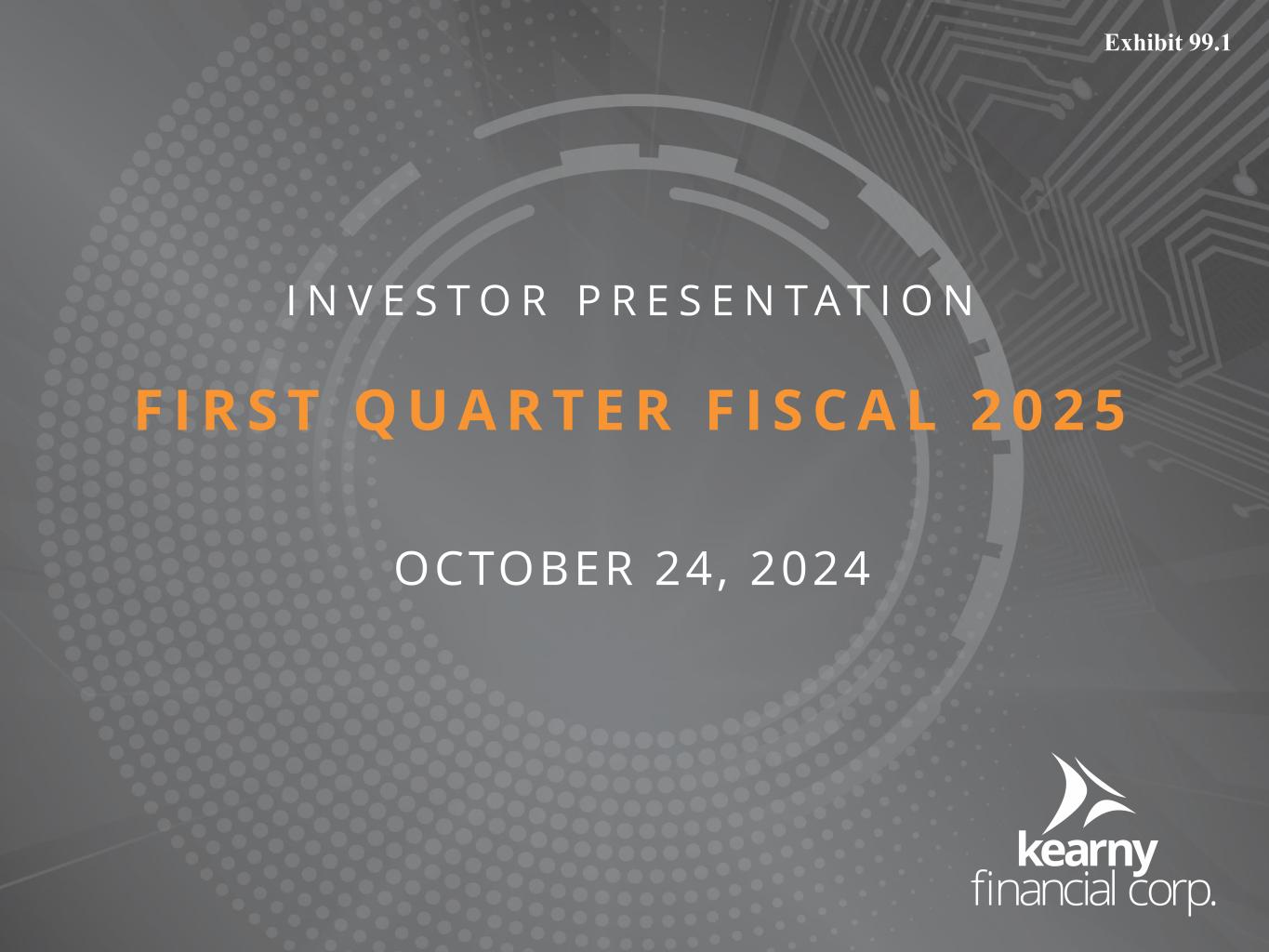 This earnings release should be read in conjunction with Kearny Financial Corp.’s Q1 2025 Investor Presentation, a copy of which is available through the Investor Relations link located at the bottom of the page of our website at www.kearnybank.com and via a Current Report on Form 8-K on the website of the Securities and Exchange Commission at www.sec.gov.