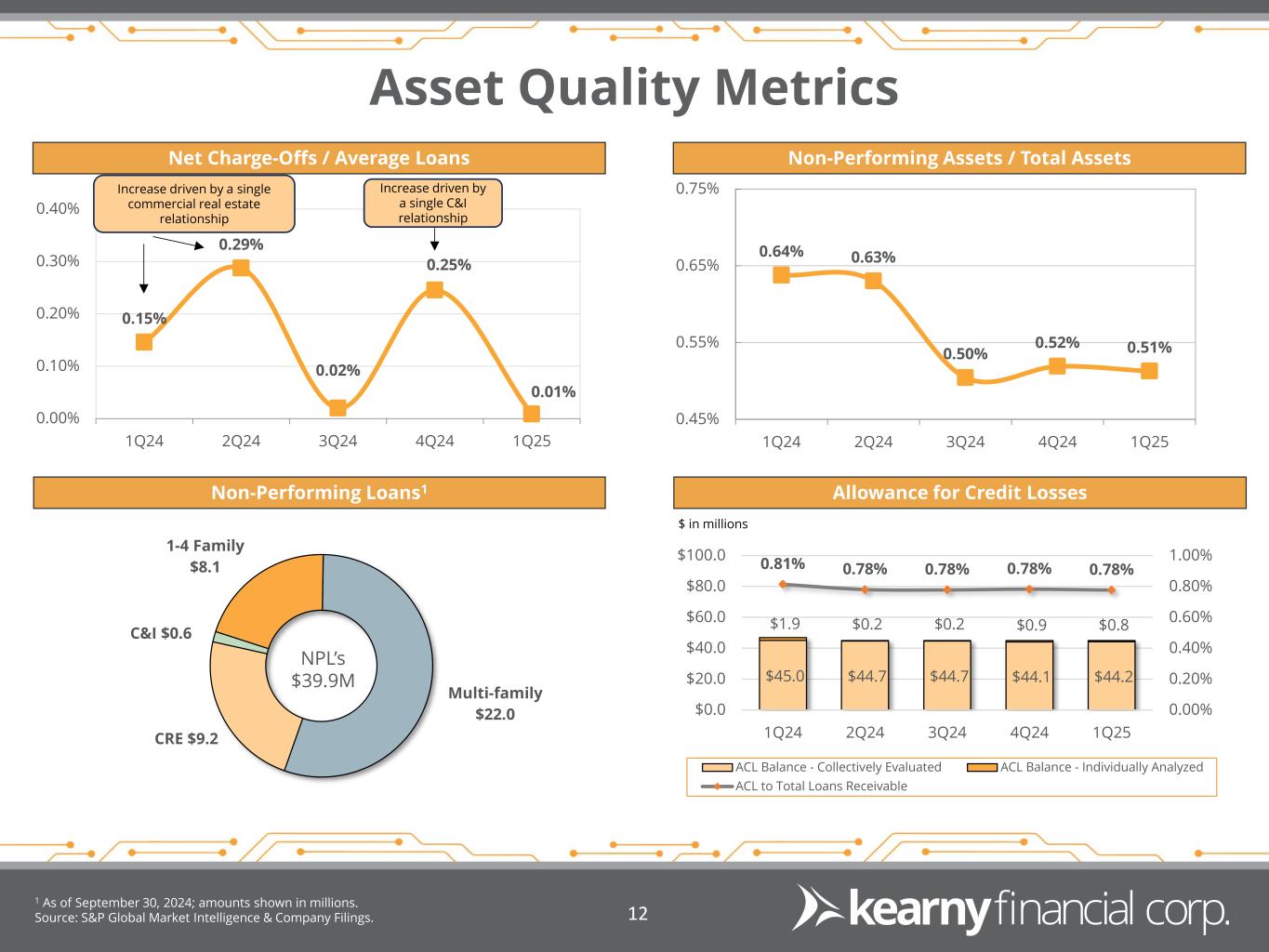 •Net charge-offs totaled $124,000, or 0.01% of average loans, on an annualized basis, for the quarter ended September 30, 2024, compared to $3.5 million, or 0.25% of average loans, on an annualized basis, for the quarter ended June 30, 2024.