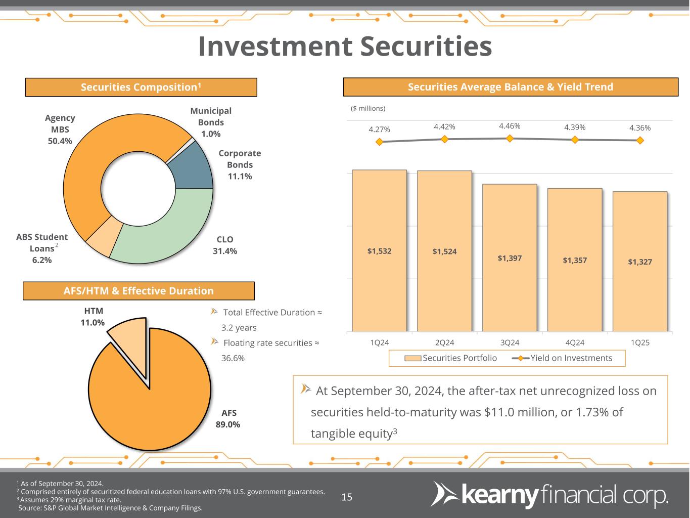 •At September 30, 2024, total stockholders’ equity included after-tax net unrealized losses on securities available for sale of $76.0 million, partially offset by after-tax unrealized gains on derivatives of $11.0 million. After-tax net unrecognized losses on securities held to maturity of $8.2 million were not reflected in total stockholders’ equity.