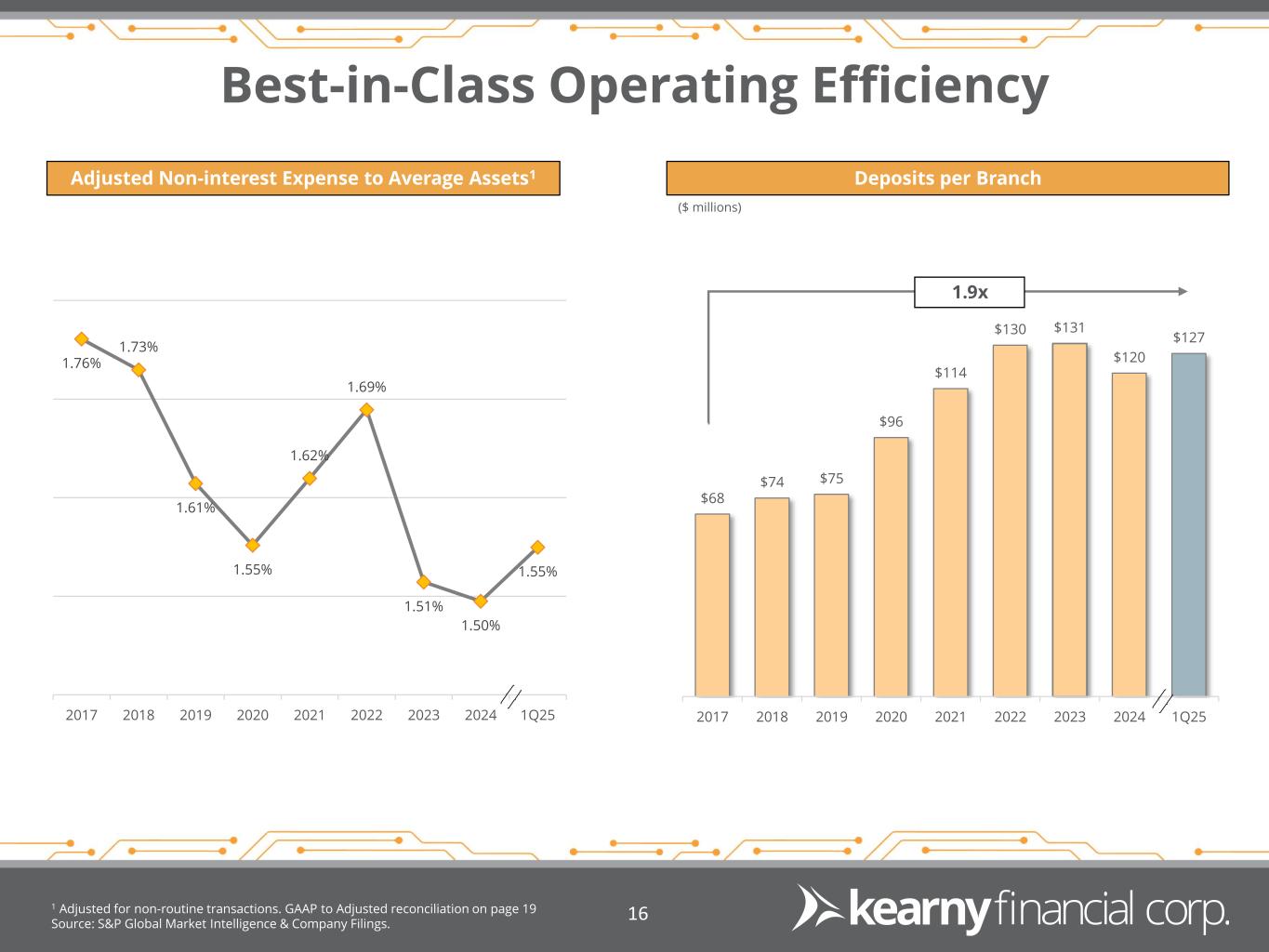 Best-in-Class Operating Efficiency 1 Adjusted for non-routine transactions. GAAP to Adjusted reconciliation on page 19 Source: S&P Global Market Intelligence & Company Filings. 16 Adjusted Non-interest Expense to Average Assets1 Deposits per Branch 1.76% 1.73% 1.61% 1.55% 1.62% 1.69% 1.51% 1.50% 1.55% 2017 2018 2019 2020 2021 2022 2023 2024 1Q25 $68 $74 $75 $96 $114 $130 $131 $120 $127 1 21 41 61 81 101 121 2017 2018 2019 2020 2021 2022 2023 2024 1Q25 1.9x ($ millions)