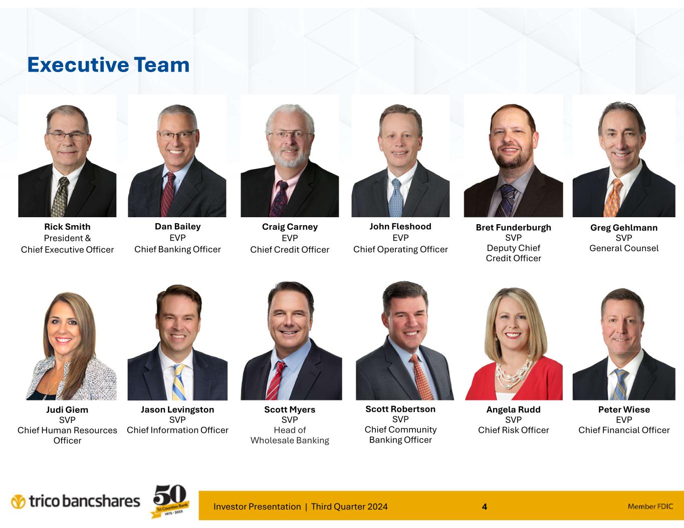 Investor Presentation | Third Quarter 2024 4 Executive Team Greg Gehlmann SVP General Counsel Craig Carney EVP Chief Credit Officer Rick Smith President & Chief Executive Officer Dan Bailey EVP Chief Banking Officer John Fleshood EVP Chief Operating Officer Angela Rudd SVP Chief Risk Officer Judi Giem SVP Chief Human Resources Officer Jason Levingston SVP Chief Information Officer Peter Wiese EVP Chief Financial Officer Bret Funderburgh SVP Deputy Chief Credit Officer Scott Robertson SVP Chief Community Banking Officer Scott Myers SVP Head of Wholesale Banking
