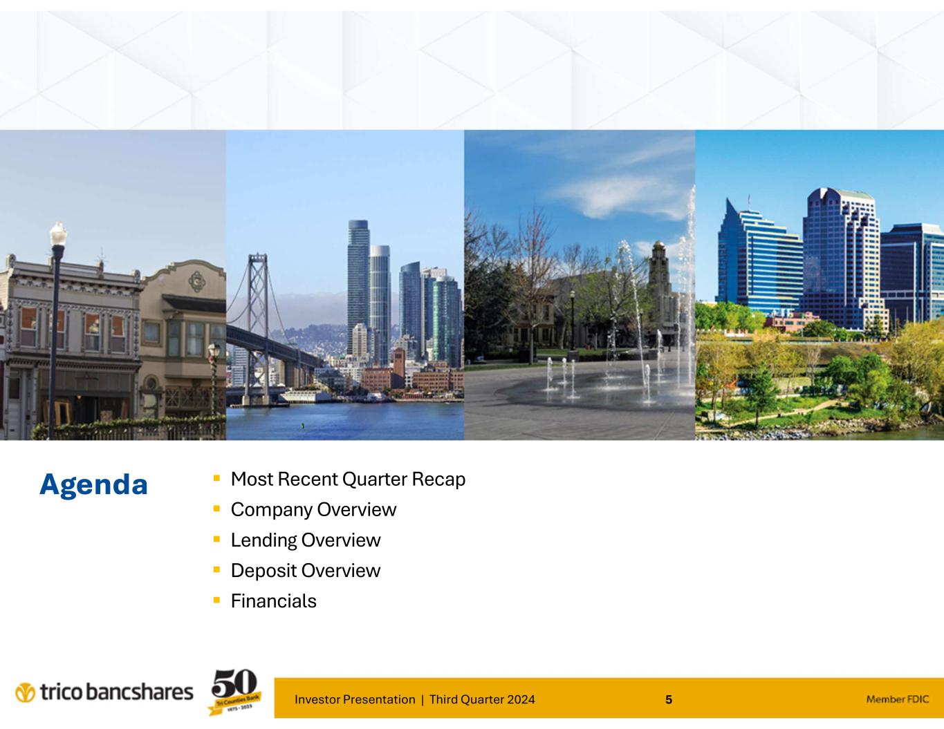 Investor Presentation | Third Quarter 2024 2 Safe Harbor Statement The statements contained herein that are not historical facts are forward-looking statements based on management’s current expectations and beliefs concerning future developments and their potential effects on the Company. Such statements involve inherent risks and uncertainties, many of which are difficult to predict and are generally beyond our control. We caution readers that a number of important factors could cause actual results to differ materially from those expressed in, or implied or projected by, such forward-looking statements. These risks and uncertainties include, but are not limited to, the following: the conditions of the United States economy in general and the strength of the local economies in which we conduct operations; the impact of any future federal government shutdown and uncertainty regarding the federal government’s debt limit or changes in trade, monetary and fiscal policies and laws, including interest rate policies of the Board of Governors of the Federal Reserve System; the impacts of inflation, interest rate, market and monetary fluctuations on the Company's business condition and financial operating results; the impact of changes in financial services industry policies, laws and regulations; regulatory restrictions affecting our ability to successfully market and price our products to consumers; the risks related to the development, implementation, use and management of emerging technologies, including artificial intelligence and machine learning; extreme weather, natural disasters and other catastrophic events that may or may not be caused by climate change and their effects on the Company's customers and the economic and business environments in which the Company operates; the impact of a slowing U.S. economy, decreases in housing and commercial real estate prices, and potentially increased unemployment on the performance of our loan portfolio, the market value of our investment securities and possible other-than-temporary impairment of securities held by us due to changes in credit quality or rates; the availability of, and cost of, sources of funding and the demand for our products; adverse developments with respect to U.S. or global economic conditions and other uncertainties, including the impact of supply chain disruptions, commodities prices, inflationary pressures and labor shortages on the economic recovery and our business; the impacts of international hostilities, wars, terrorism or geopolitical events; adverse developments in the financial services industry generally such as the recent bank failures and any related impact on depositor behavior or investor sentiment; risks related to the sufficiency of liquidity; the possibility that our recorded goodwill could become impaired, which may have an adverse impact on our earnings and capital; the costs or effects of mergers, acquisitions or dispositions we may make, as well as whether we are able to obtain any required governmental approvals in connection with any such activities, or identify and complete favorable transactions in the future, and/or realize the anticipated financial and business benefits; the regulatory and financial impacts associated with exceeding $10 billion in total assets; the negative impact on our reputation and profitability in the event customers experience economic harm or in the event that regulatory violations are identified; the ability to execute our business plan in new markets; the future operating or financial performance of the Company, including our outlook for future growth and changes in the level and direction of our nonperforming assets and charge-offs; the appropriateness of the allowance for credit losses, including the assumptions made under our current expected credit losses model; any deterioration in values of California real estate, both residential and commercial; the effectiveness of the Company's asset management activities managing the mix of earning assets and in improving, resolving or liquidating lower-quality assets; the effect of changes in the financial performance and/or condition of our borrowers; changes in accounting standards and practices; changes in consumer spending, borrowing and savings habits; our ability to attract and maintain deposits and other sources of liquidity; the effects of changes in the level or cost of checking or savings account deposits on our funding costs and net interest margin; increasing noninterest expense and its impact on our financial performance; competition and innovation with respect to financial products and services by banks, financial institutions and non-traditional competitors including retail businesses and technology companies; the challenges of attracting, integrating and retaining key employees; the vulnerability of the Company's operational or security systems or infrastructure, the systems of third-party vendors or other service providers with whom the Company contracts, and the Company's customers to unauthorized access, computer viruses, phishing schemes, spam attacks, human error, natural disasters, power loss and data/security breaches and the cost to defend against and respond to such incidents; the impact of the 2023 cyber security ransomware incident, including the pending litigation, on our operations and reputation; increased data security risks due to work from home arrangements and email vulnerability; failure to safeguard personal information, and any resulting litigation; the effect of a fall in stock market prices on our brokerage and wealth management businesses; the transition from the LIBOR to new interest rate benchmarks; the emergence or continuation of widespread health emergencies or pandemics; the Company’s potential judgments, orders, settlements, penalties, fines and reputational damage resulting from pending or future litigation and regulatory investigations, proceedings and enforcement actions; 
