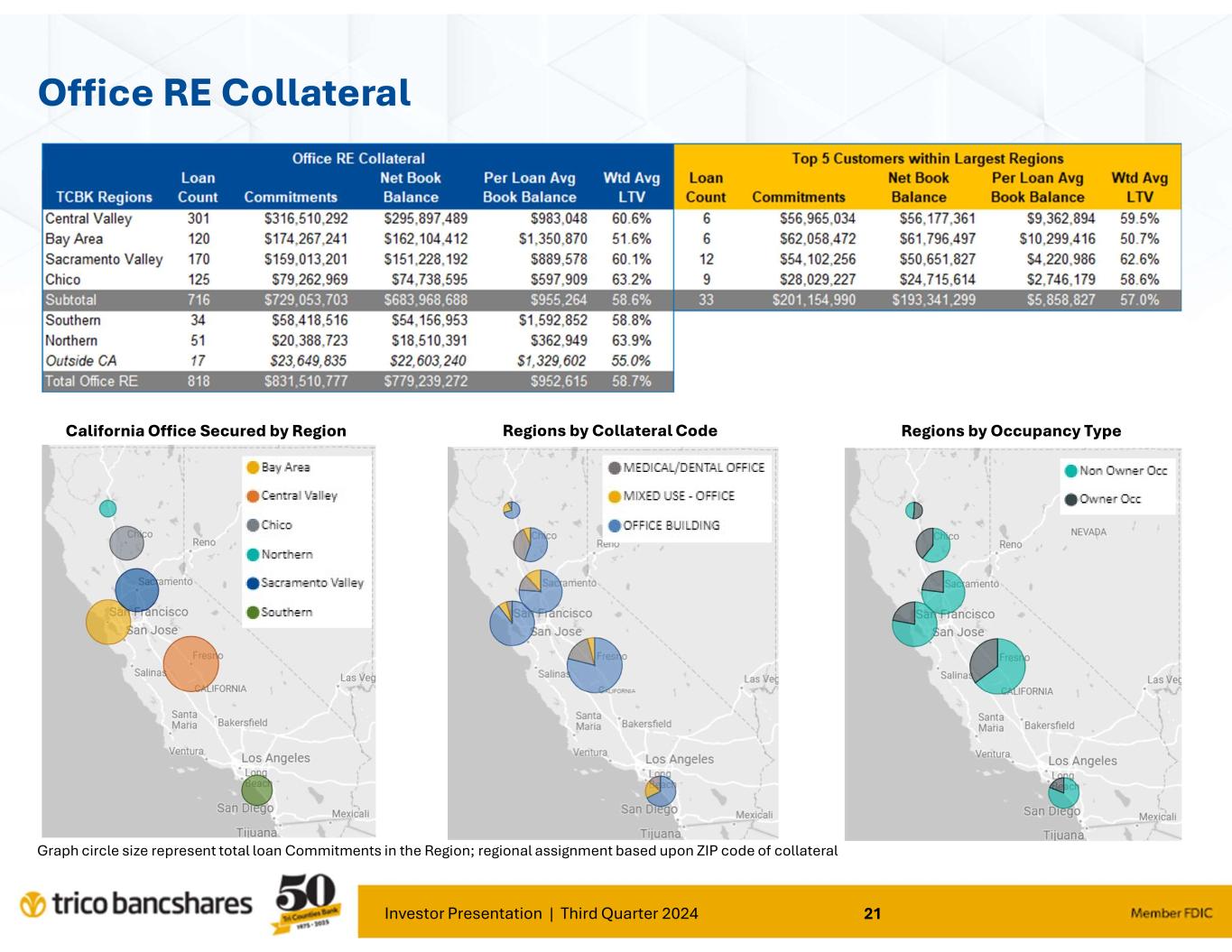 Investor Presentation | Third Quarter 2024 21 Office RE Collateral Graph circle size represent total loan Commitments in the Region; regional assignment based upon ZIP code of collateral California Office Secured by Region Regions by Collateral Code Regions by Occupancy Type