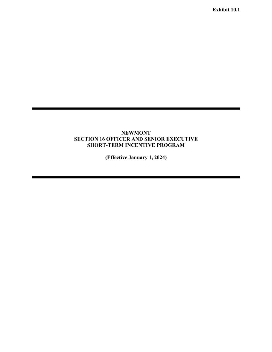 Exhibit 10.1 NEWMONT SECTION 16 OFFICER AND SENIOR EXECUTIVE SHORT-TERM INCENTIVE PROGRAM (Effective January 1, 2024)