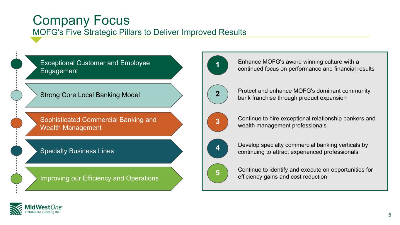 4 Capital Raise & Balance Sheet Repositioning Capital Raise (net proceeds) $118.6 million Securities Sold (market value): $1.0 billion Average Yield on Securities Sold: 1.58% Reinvested Securities (market value): $589.8 million Average Yield on Reinvested Securities 4.65% Funding Paid Down: $418.7 million(2) Weighted Avg Cost of Funding Paid Down: 4.77% Transaction Details(1) (1)Transaction details are as of 10/21/24. (2)Represents $405.0 million of Federal Reserve Bank Term Funding Program borrowings and $13.7 million of accrued interest.