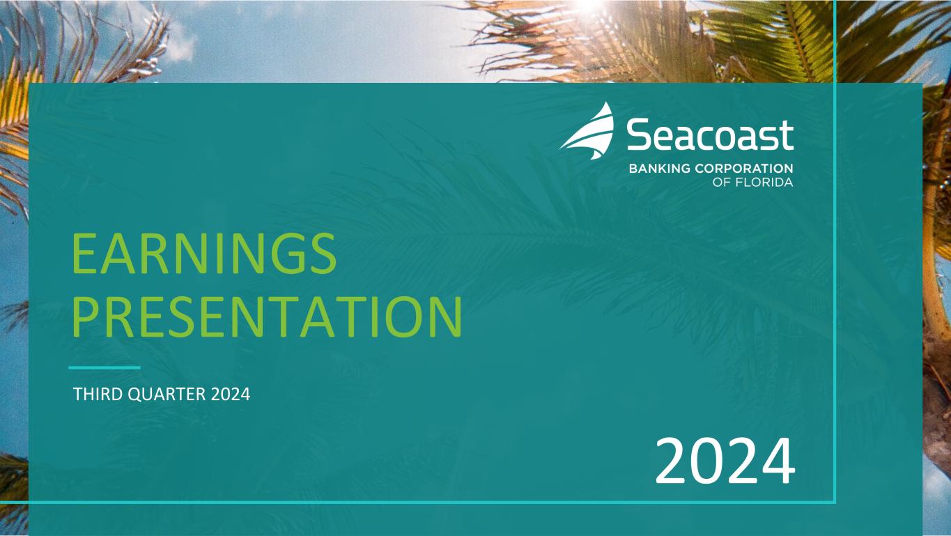 2THIRD QUARTER 2024 EARNINGS PRESENTATION Cautionary Notice Regarding Forward-Looking Statements This presentation contains “forward-looking statements” within the meaning, and protections, of Section 27A of the Securities Act of 1933, as amended, and Section 21E of the Securities Exchange Act of 1934, as amended, including, without limitation, statements about future financial and operating results, cost savings, enhanced revenues, economic and seasonal conditions in the Company’s markets, and improvements to reported earnings that may be realized from cost controls, tax law changes, new initiatives and for integration of banks that the Company has acquired, or expects to acquire, as well as statements with respect to Seacoast's objectives, strategic plans, expectations and intentions and other statements that are not historical facts. Actual results may differ from those set forth in the forward-looking statements. Forward-looking statements include statements with respect to the Company’s beliefs, plans, objectives, goals, expectations, anticipations, assumptions, estimates and intentions about future performance, and involve known and unknown risks, uncertainties and other factors, which may be beyond the Company’s control, and which may cause the actual results, performance or achievements of Seacoast Banking Corporation of Florida (“Seacoast” or the “Company”) or its wholly-owned banking subsidiary, Seacoast National Bank (“Seacoast Bank”), to be materially different from results, performance or achievements expressed or implied by such forward-looking statements. You should not expect the Company to update any forward-looking statements. All statements other than statements of historical fact could be forward-looking statements. You can identify these forward- looking statements through the use of words such as "may", "will", "anticipate", "assume", "should", "support", "indicate", "would", "believe", "contemplate", "expect", "estimate", "continue", "further", "plan", "point to", "project", "could", "intend", "target" or other similar words and expressions of the future. These forward-looking statements may not be realized due to a variety of factors, including, without limitation: the impact of current and future economic and market conditions generally (including seasonality) and in the financial services industry, nationally and within Seacoast’s primary market areas, including the effects of inflationary pressures, changes in interest rates, slowdowns in economic growth, and the potential for high unemployment rates, as well as the financial stress on borrowers and changes to customer and client behavior and credit risk as a result of the foregoing; potential impacts of adverse developments in the banking industry including those highlighted by high- profile bank failures, and including impacts on customer confidence, deposit outflows, liquidity and the regulatory response thereto (including increases in the cost of our deposit insurance assessments), the Company's ability to effectively manage its liquidity risk and any growth plans, and the availability of capital and funding; governmental monetary and fiscal policies, including interest rate policies of the Board of Governors of the Federal Reserve, as well as legislative, tax and regulatory changes including proposed overdraft and late fee caps, including those that impact the money supply and inflation; the risks of changes in interest rates on the level and composition of deposits (as well as the cost of, and competition for, deposits), loan demand, liquidity and the values of loan collateral, securities, and interest rate sensitive assets and liabilities; interest rate risks (including the impacts of interest rates on macroeconomic conditions, customer and client behavior, and on our net interest income), as well as the impact of prolonged elevated interest rates on our financial projections and models, sensitivities and the shape of the yield curve; changes in accounting policies, rules and practices; changes in retail distribution strategies, customer preferences and behavior generally and as a result of economic factors, including heightened inflation; changes in the availability and cost of credit and capital in the financial markets; changes in the prices, values and sales volumes of residential and commercial real estate, especially as they relate to the value of collateral supporting the Company’s loans; the Company’s concentration in commercial real estate loans and in real estate collateral in Florida; Seacoast’s ability to comply with any regulatory requirements; the risk that the regulatory environment may not be conducive to or may prohibit or delay the consummation of future mergers and/or business combinations, may increase the length of time and amount of resources required to consummate such transactions, and may reduce the anticipated benefit; inaccuracies or other failures from the use of models, including the failure of assumptions and estimates, as well as differences in, and changes to, economic, market and credit conditions; the impact on the valuation of Seacoast’s investments due to market volatility or counterparty payment risk, as well as the effect of a decline in stock market prices on our fee income from our wealth management business; statutory and regulatory dividend restrictions; increases in regulatory capital requirements for banking organizations generally; the risks of mergers, acquisitions and divestitures, including Seacoast’s ability to continue to identify acquisition targets, successfully acquire and integrate desirable financial institutions and realize expected revenues and revenue synergies; changes in technology or products that may be more difficult, costly, or less effective than anticipated; the Company’s ability to identify and address increased cybersecurity risks, including those impacting vendors and other third parties which may be 