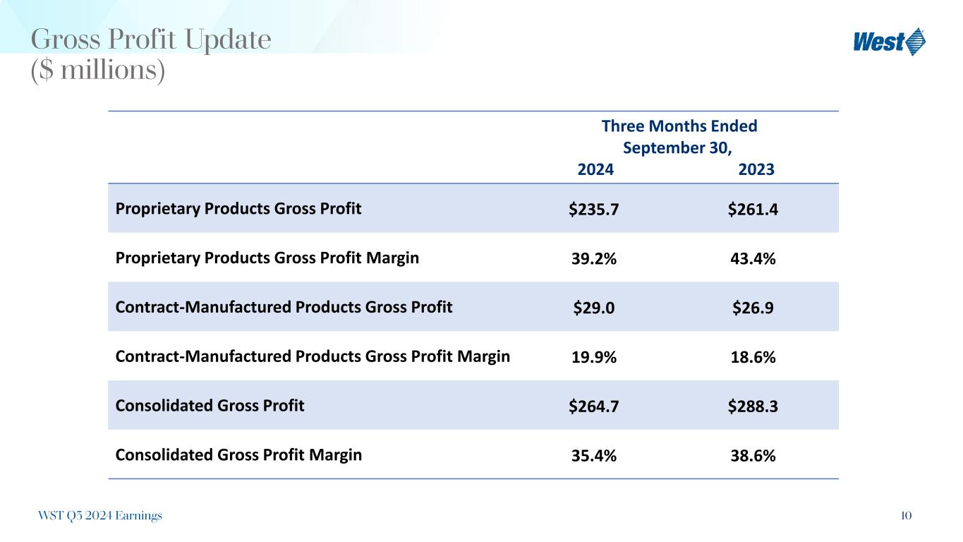 9 Change in Consolidated Net Sales Third-quarter 2023 to 2024 ($ millions) WST Q3 2024 Earnings