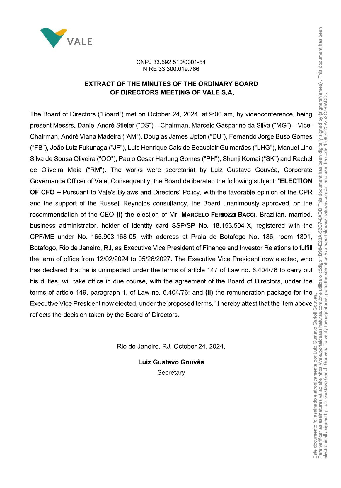 | Vale S.A. (Registrant) | ||