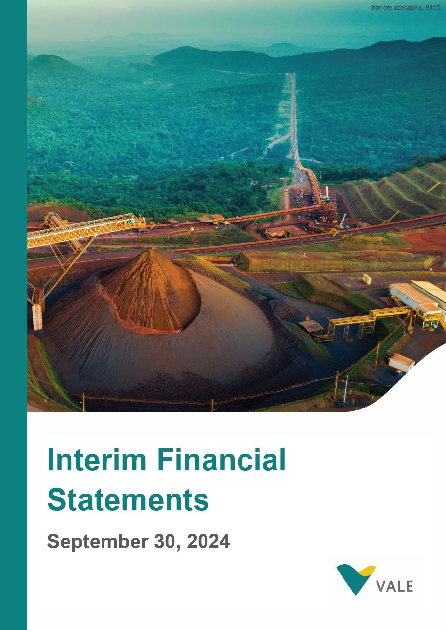 We have reviewed the accompanying consolidated interim statement of financial position of Vale S.A. and its subsidiaries (the "Company") as of September 30, 2024, and the related consolidated interim income statement and statements of comprehensive income for the three-month and nine-month periods ended September 30, 2024 and September 30, 2023 and the consolidated interim statements of changes in equity and cash flows for the nine-month periods ended September 30, 2024 and September 30, 2023, including the related notes (collectively referred to as the "interim financial statements"). Based on our reviews, we are not aware of any material modifications that should be made to the accompanying interim financial statements for them to be in conformity with IAS 34 - Interim Financial Reporting, as issued by the International Accounting Standards Board (IASB).