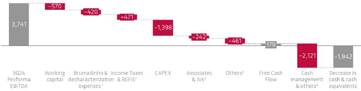 | 1 Includes adjustment of US$ 94 million in 3Q24, US$ 83 million in 2Q24, US$ 243 million in 9M24, US$ 47 million in 3Q23 and US$ 134 million in 9M23 to reflect the performance of the streaming transactions at market price. 2 Excluding expenses related to Brumadinho. 3 Including the EBITDA from associates and JVs. Historical figures were restated. 4 Including leases (IFRS 16). | |||||||||