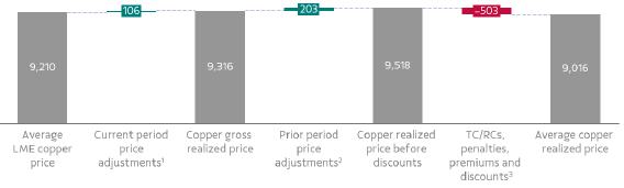| ¹ Comprises (i) the realized quotational period effects (based on sales distribution in the prior three months, as well as the differences between the LME price at the moment of sale and the LME average price), with a positive impact of US$48/t and (ii) fixed-price sales, with a positive impact of US$134/t. | |||||||||