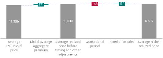 | Average nickel realized price | 17,012 | 21,237 | -20% | 18,638 | -9% | 17,478 | 23,202 | -25% | |
