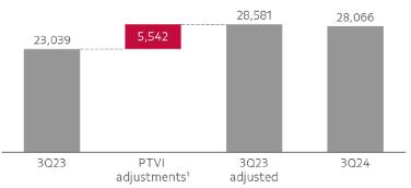 | Adjusted EBIT | 2,867 | 3,651 | -21% | 3,200 | -10% | 8,791 | 9,928 | -11% | |