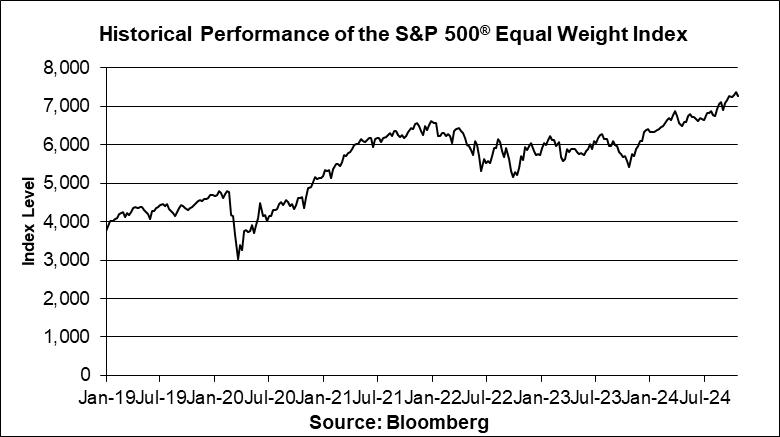 The following graphs set forth the historical performance of each Index based on the weekly historical closing levels from January 4, 2019 through October 18, 2024. The closing level of the S&P 500® Equal Weight Index on October 24, 2024 was 7,253.49. The closing level of the Russell 2000® Index on October 24, 2024 was 2,218.922. We obtained the closing levels above and below from the Bloomberg Professional® service (“Bloomberg”), without independent verification.