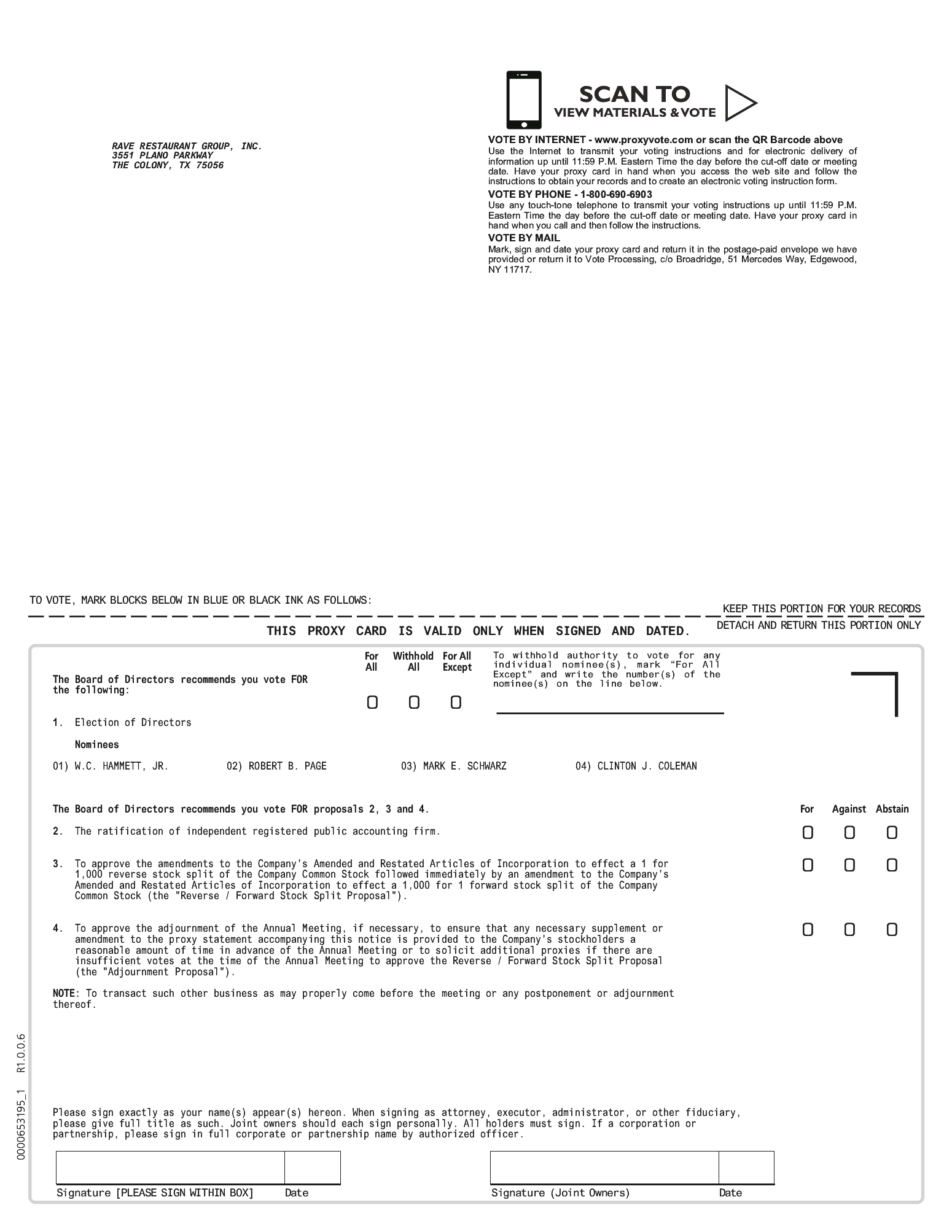 Thank you for your ongoing support of and continued interest in RAVE Restaurant Group, Inc.