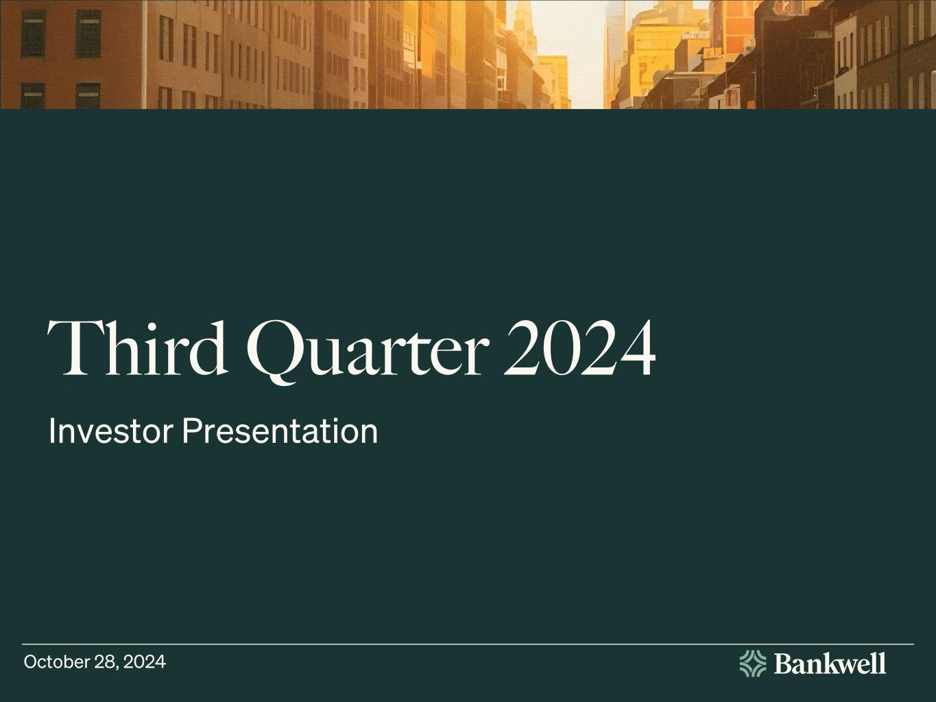 New Canaan, CT – October 28, 2024 – Bankwell Financial Group, Inc. (NASDAQ: BWFG), a leading commercial bank with a growing digital focus, reported GAAP net income of $1.9 million, or $0.24 per share for the third quarter of 2024, versus $1.1 million, or $0.14 per share, for the second quarter of 2024. The Company's Board of Directors declared a $0.20 per share cash dividend, payable November 22, 2024 to shareholders of record on November 11, 2024.