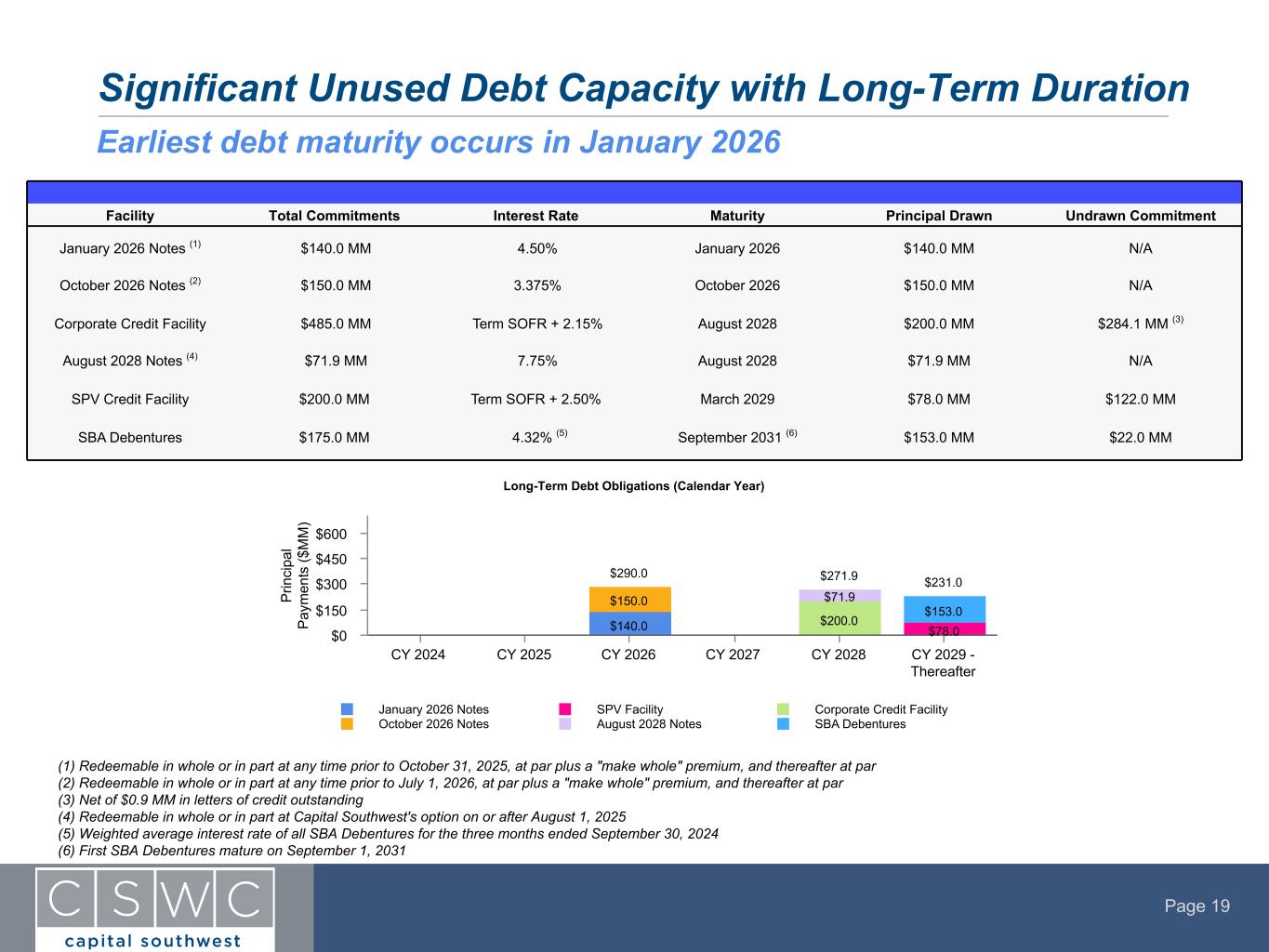 As of September 30, 2024, Capital Southwest had the following borrowings outstanding: