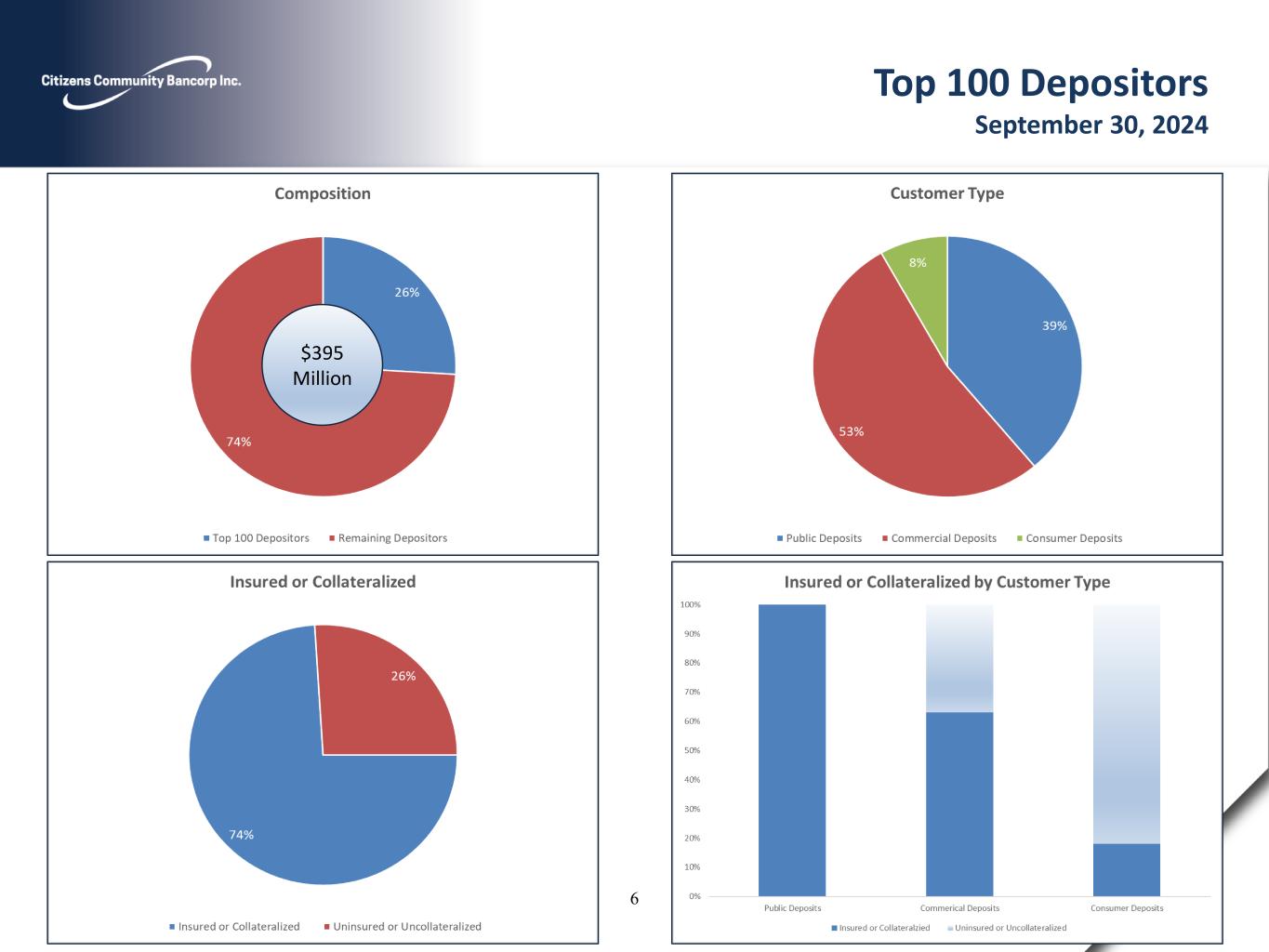 Top 100 Depositors September 30, 2024 $395 Million 6