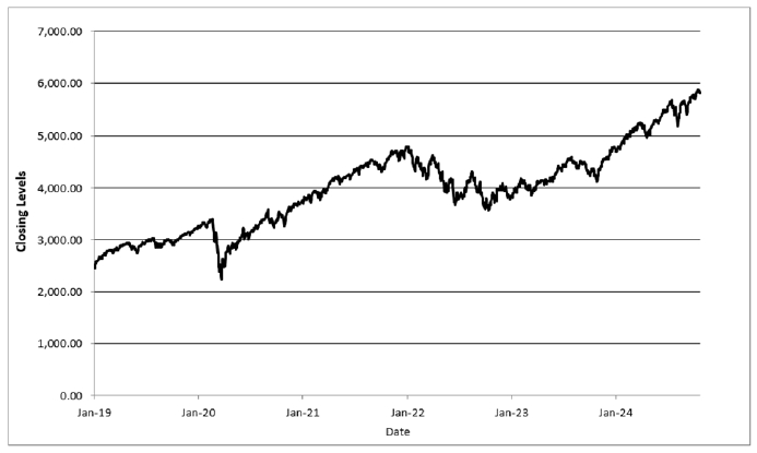 The following graph sets forth daily closing levels of the S&P 500® Index for the period from January 1, 2019 to October 25, 2024. The closing level on October 25, 2024 was 5,808.12. The historical performance of the S&P 500® Index should not be taken as an indication of its future performance during the term of the securities.