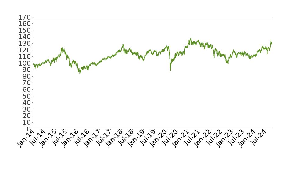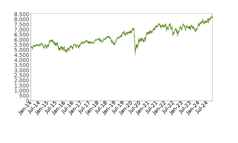 The following graph shows the daily historical performance of the XIN0I in the period from January 1, 2014 through October 24, 2024. We obtained this historical data from Bloomberg L.P. We have not independently verified the accuracy or completeness of the information obtained from Bloomberg L.P. On the pricing date, the closing level of the XIN0I was 14,235.10.