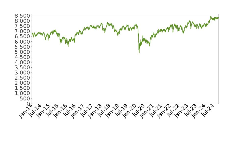 The following graph shows the daily historical performance of the AS51 in the period from January 1, 2014 through the pricing date. We obtained this historical data from Bloomberg L.P. We have not independently verified the accuracy or completeness of the information obtained from Bloomberg L.P. On the pricing date, the closing level of the AS51 was 8,206.255.