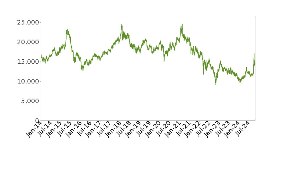 The following graph shows the daily historical performance of the XIN0I in the period from January 1, 2014 through the pricing date. We obtained this historical data from Bloomberg L.P. We have not independently verified the accuracy or completeness of the information obtained from Bloomberg L.P. On the pricing date, the closing level of the XIN0I was 14,235.10.