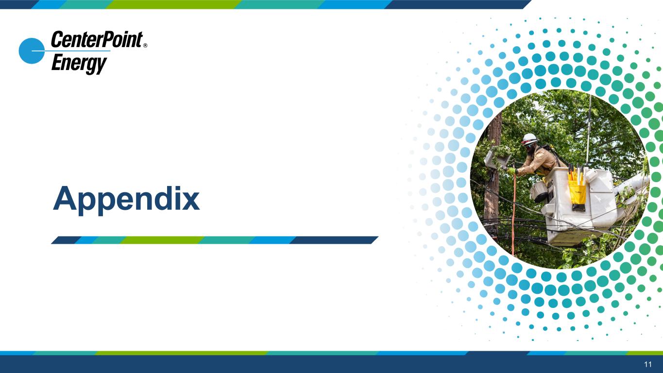 10 Contacts Jackie Richert Senior Vice President Corporate Planning, Investor Relations and Treasury Tel. (713) 207 – 9380 jackie.richert@centerpointenergy.com Ben Vallejo Director Investor Relations and Corporate Planning Tel. (713) 207 – 5461 ben.vallejo@centerpointenergy.com General Contact Tel. (713) 207 – 6500 https://investors.centerpointenergy.com/contact-us